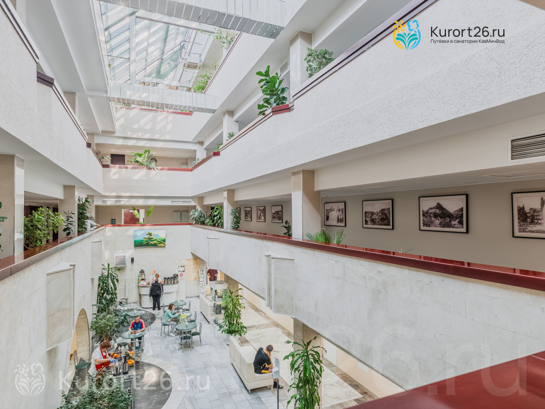 Для спокойного отдыха оборудована библиотека с книгами и журналами, релакс-зона с телевизором и аэросолярий на крыше, откуда открывается живописный вид на Кисловодск и горы.