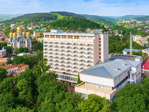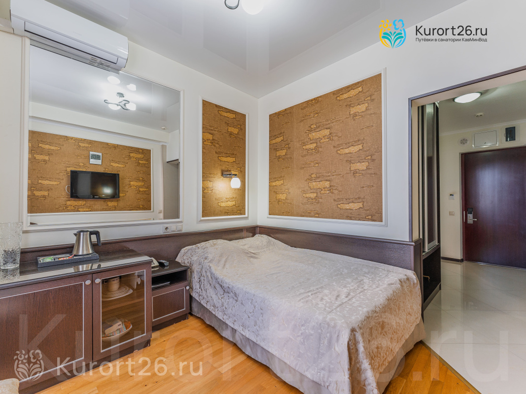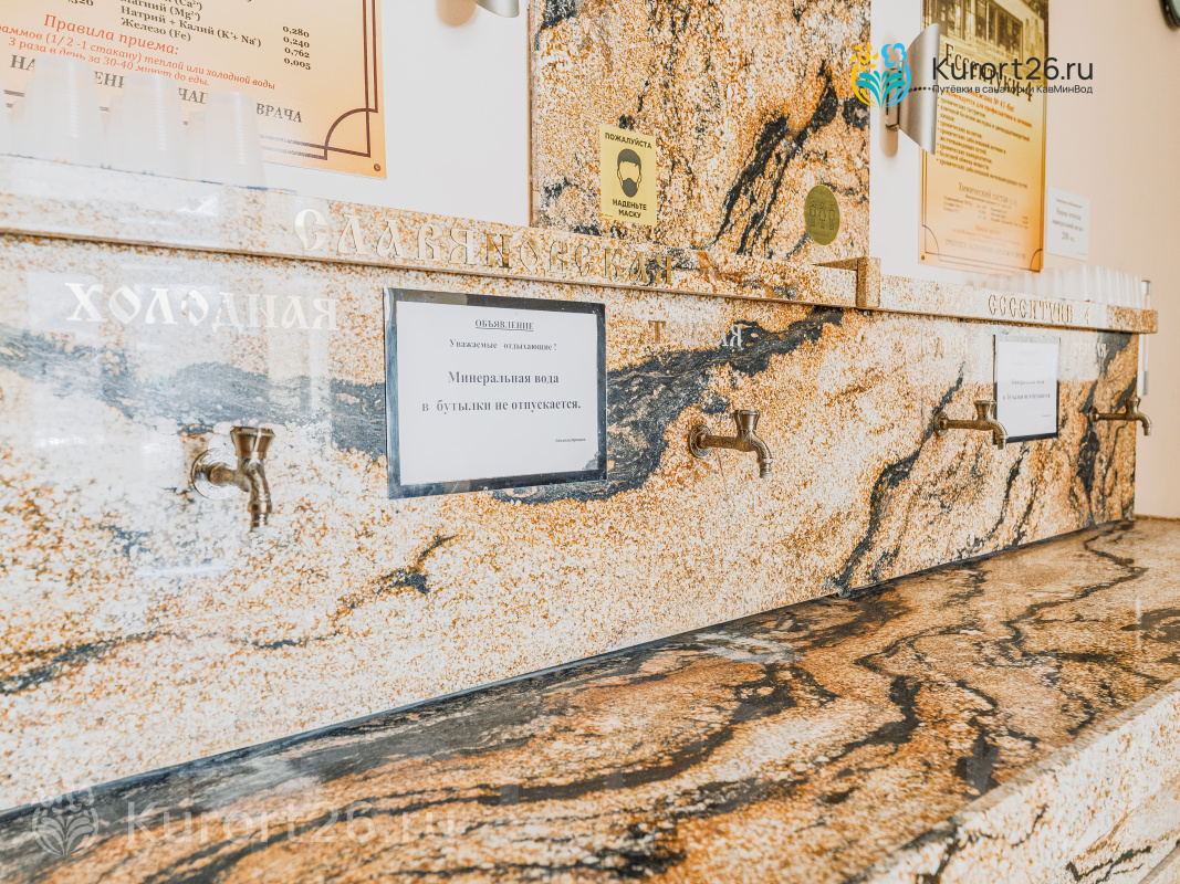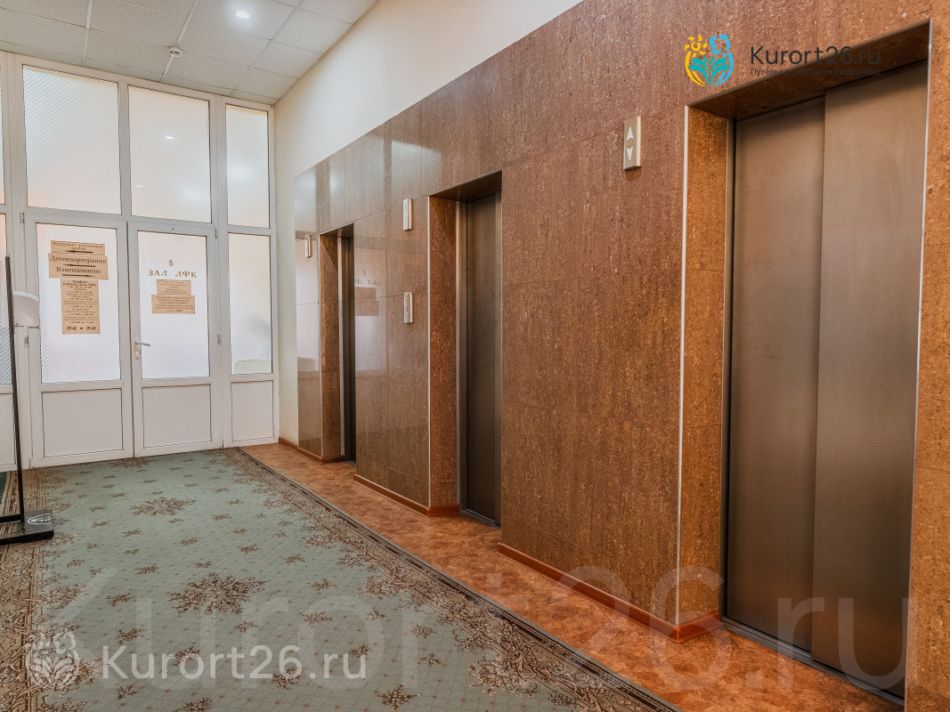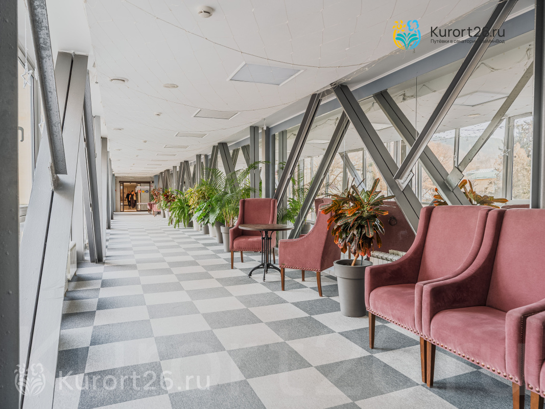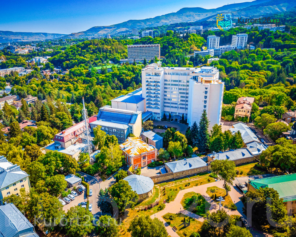 Санаторий имеет прямой выход в Курортный парк к «Стеклянной струе»: за 5–12 минут прогулки можно дойти до Колоннады, Курортного бульвара, Филармонии, музея-усадьбы Ярошенко. На территории есть собственный бювет с минеральной водой двух курортов: «Ессентуки-4» и «Славяновская» (Железноводск). В 7 минутах прогулки расположена Нарзанная галерея с тремя видами нарзана — общий, сульфатный и доломитный.