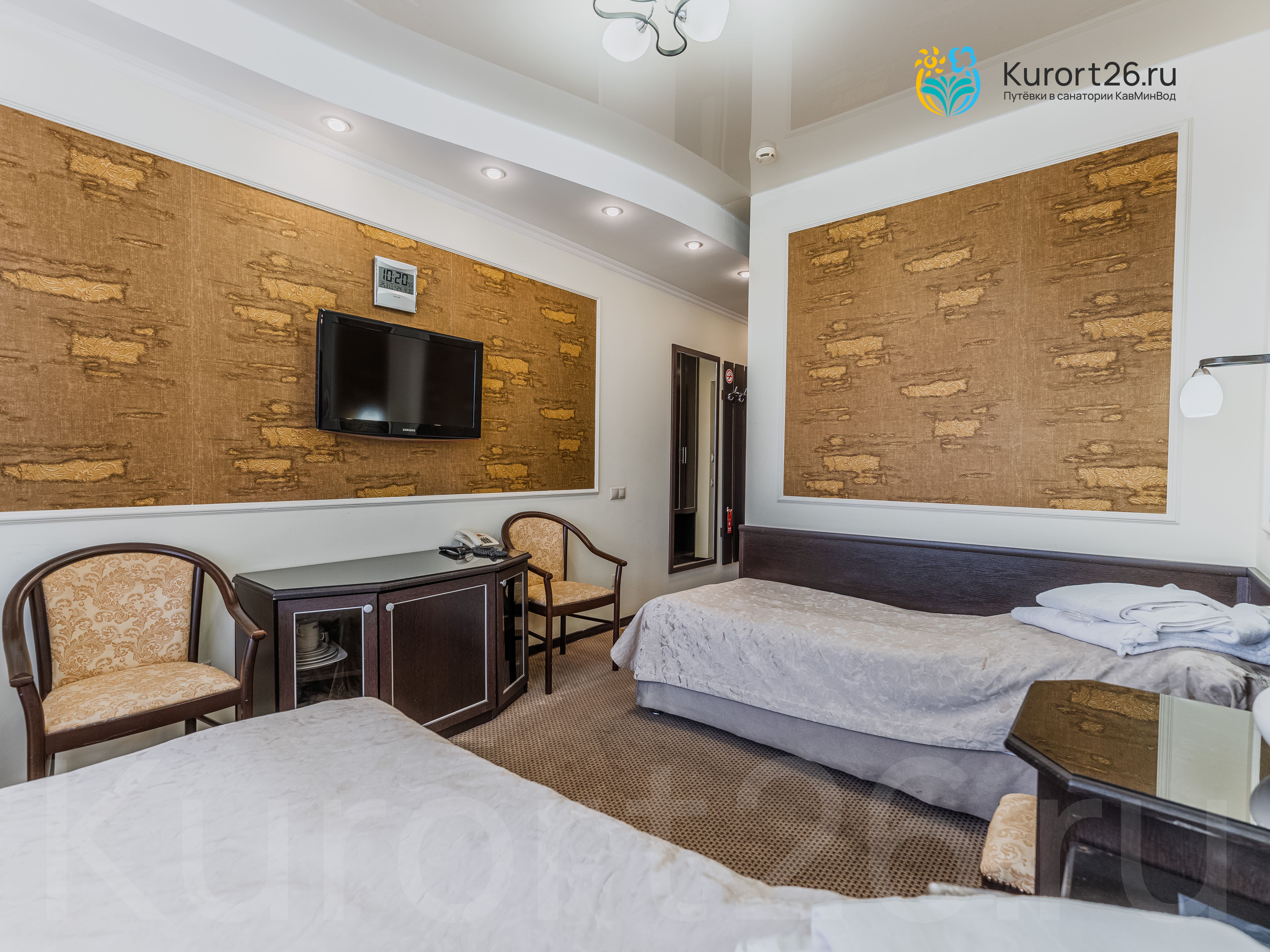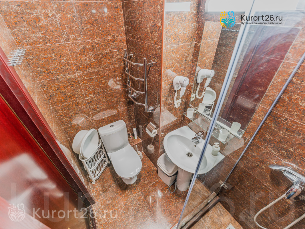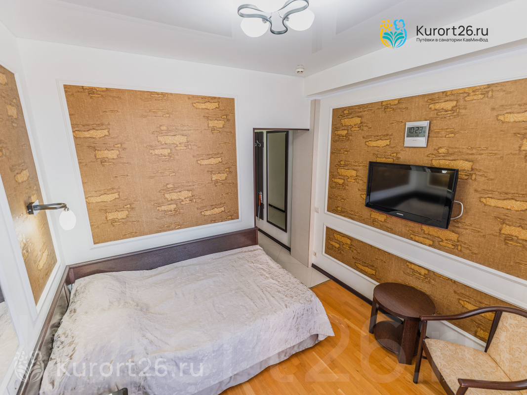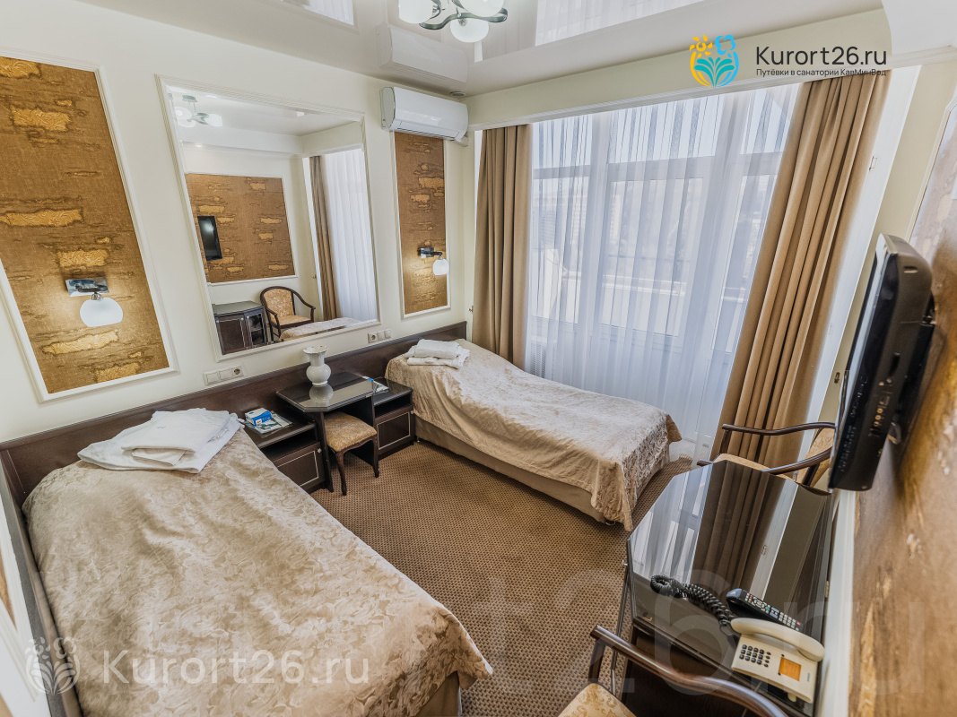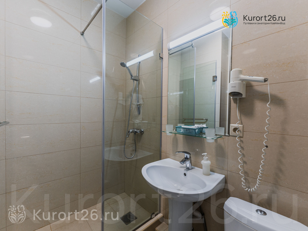 Санаторий имеет прямой выход в Курортный парк к «Стеклянной струе»: за 5–12 минут прогулки можно дойти до Колоннады, Курортного бульвара, Филармонии, музея-усадьбы Ярошенко. На территории есть собственный бювет с минеральной водой двух курортов: «Ессентуки-4» и «Славяновская» (Железноводск). В 7 минутах прогулки расположена Нарзанная галерея с тремя видами нарзана — общий, сульфатный и доломитный.