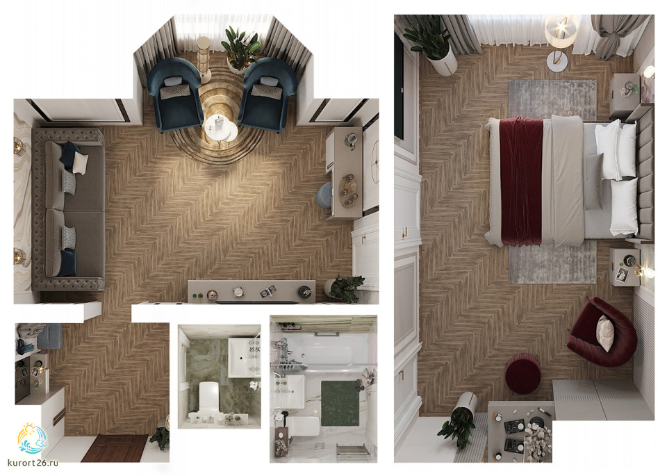 Номер находится на 1 этаже корпуса №5. Площадь номера: 43,1 м2