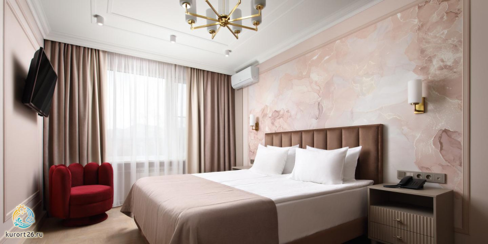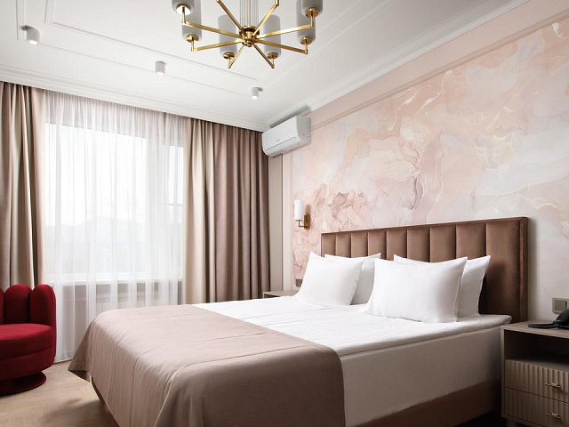 В номерах: две односпальные кровати, мягкая мебель, ЖК-телевизор, кабельные каналы телевидения, Wi-Fi в номере, мини-холодильник, телефон, сейф, кондиционер, магнитная ключ-карта, электрический чайник, чайный набор, ванная комната: фен для сушки волос, халат, тапочки, туалетный набор (шампунь, гель для душа, мыло, шапочка для душа).
