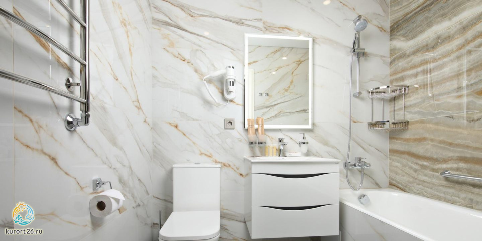 холодильник, кондиционер, телевизор, чайник, фен, балкон, сейф, телефон, интернет в номере, санузел с душевой кабиной, ванные принадлежности, халат, тапочки, двуспальная кровать, набор мягкой мебели, электрочайник, ванная комната, чайный набор