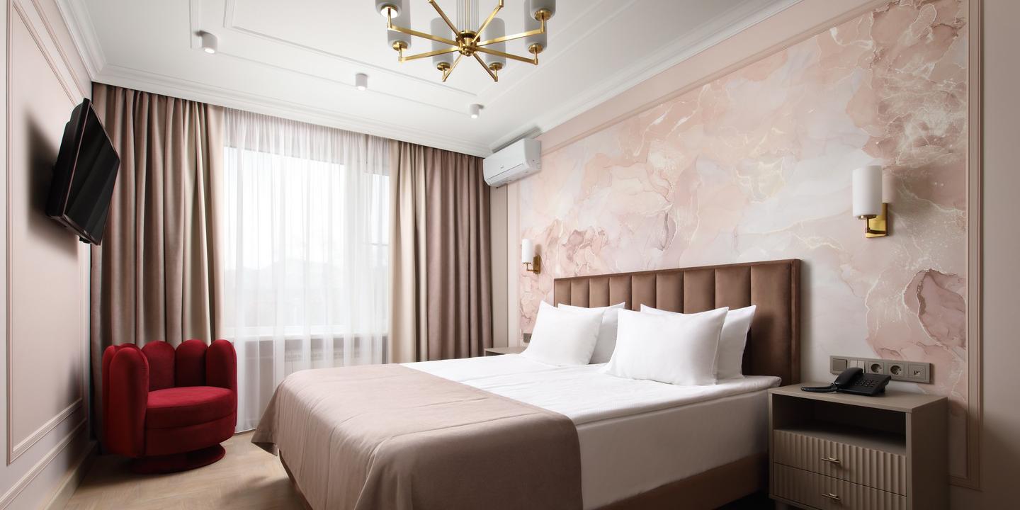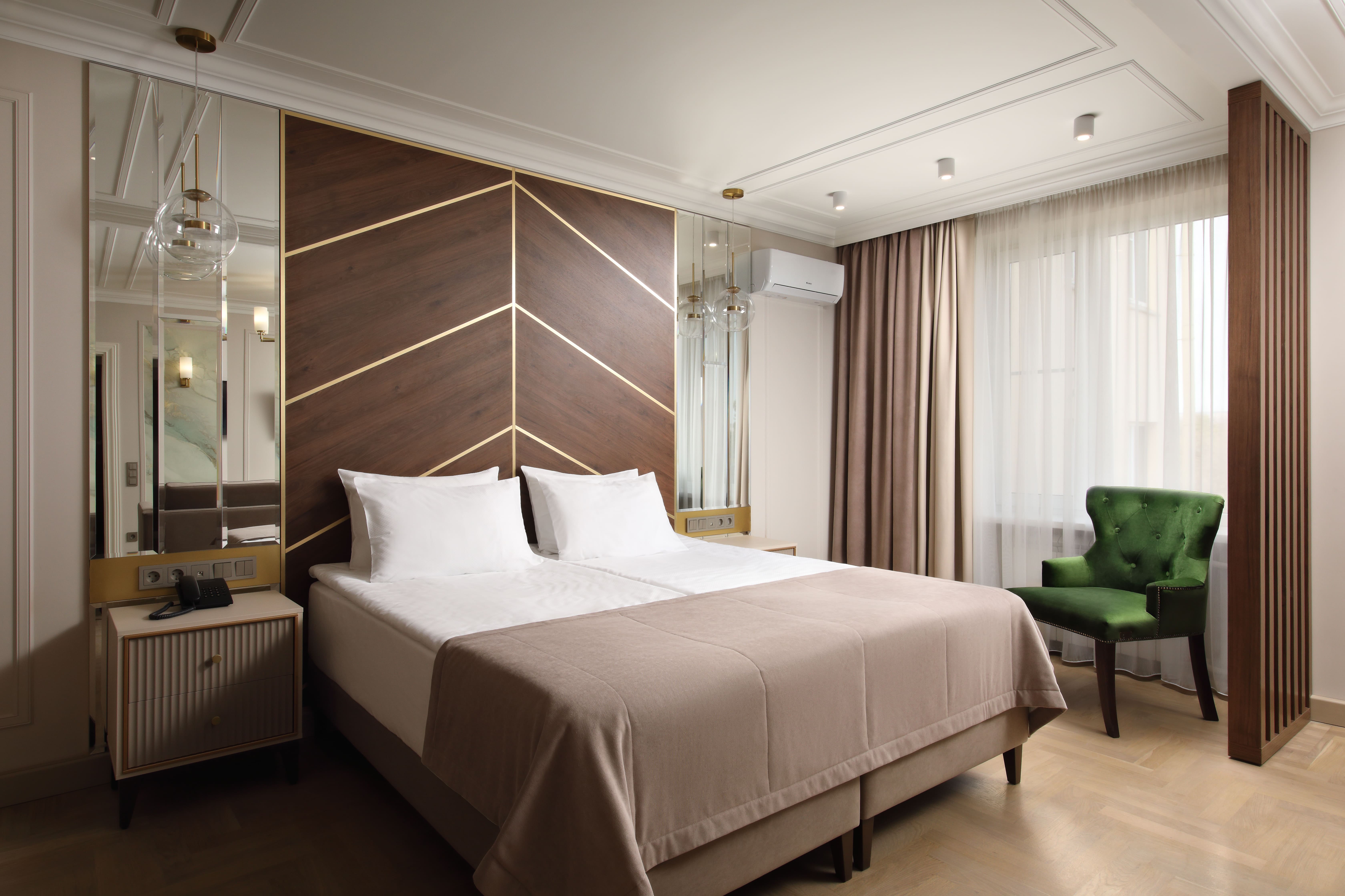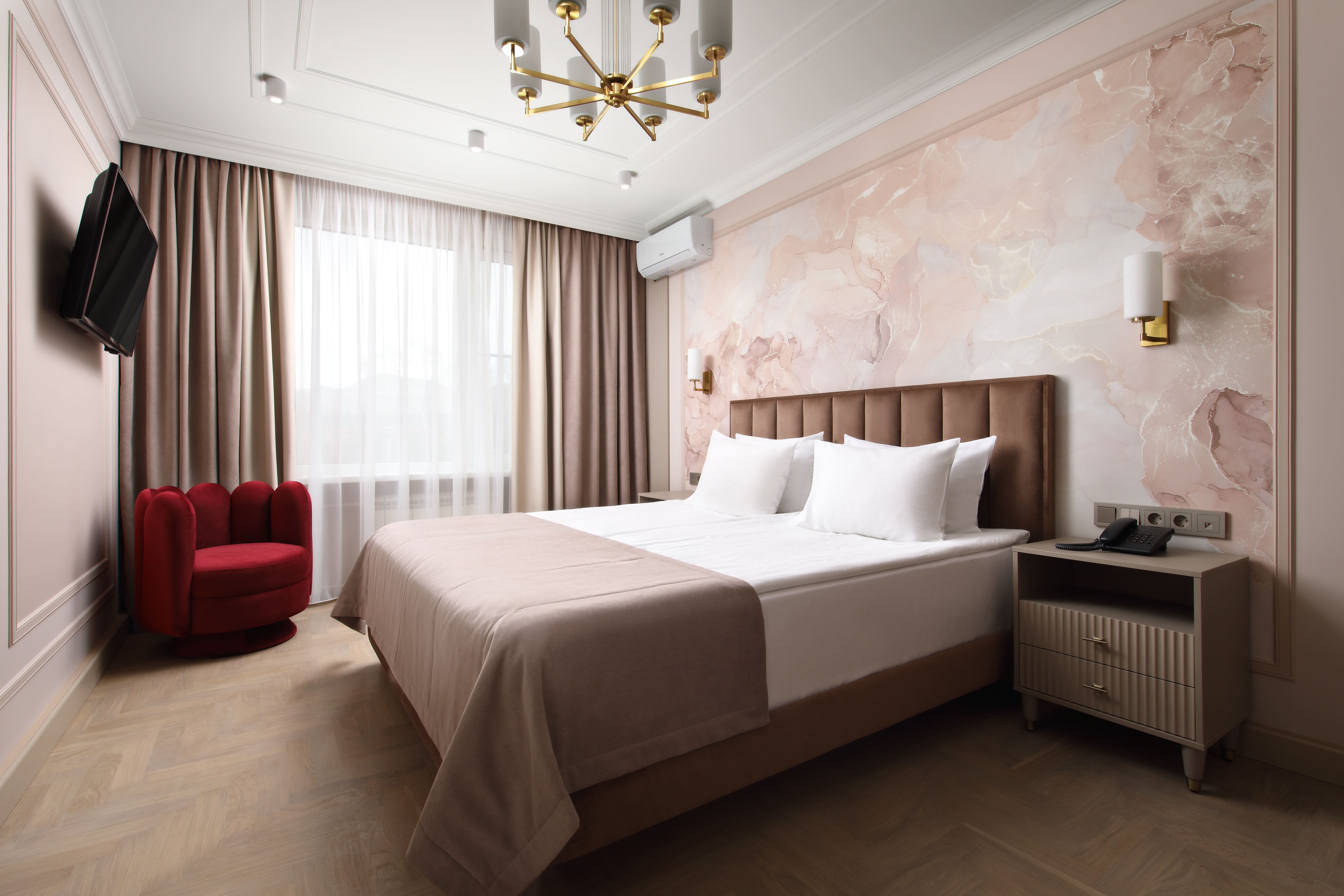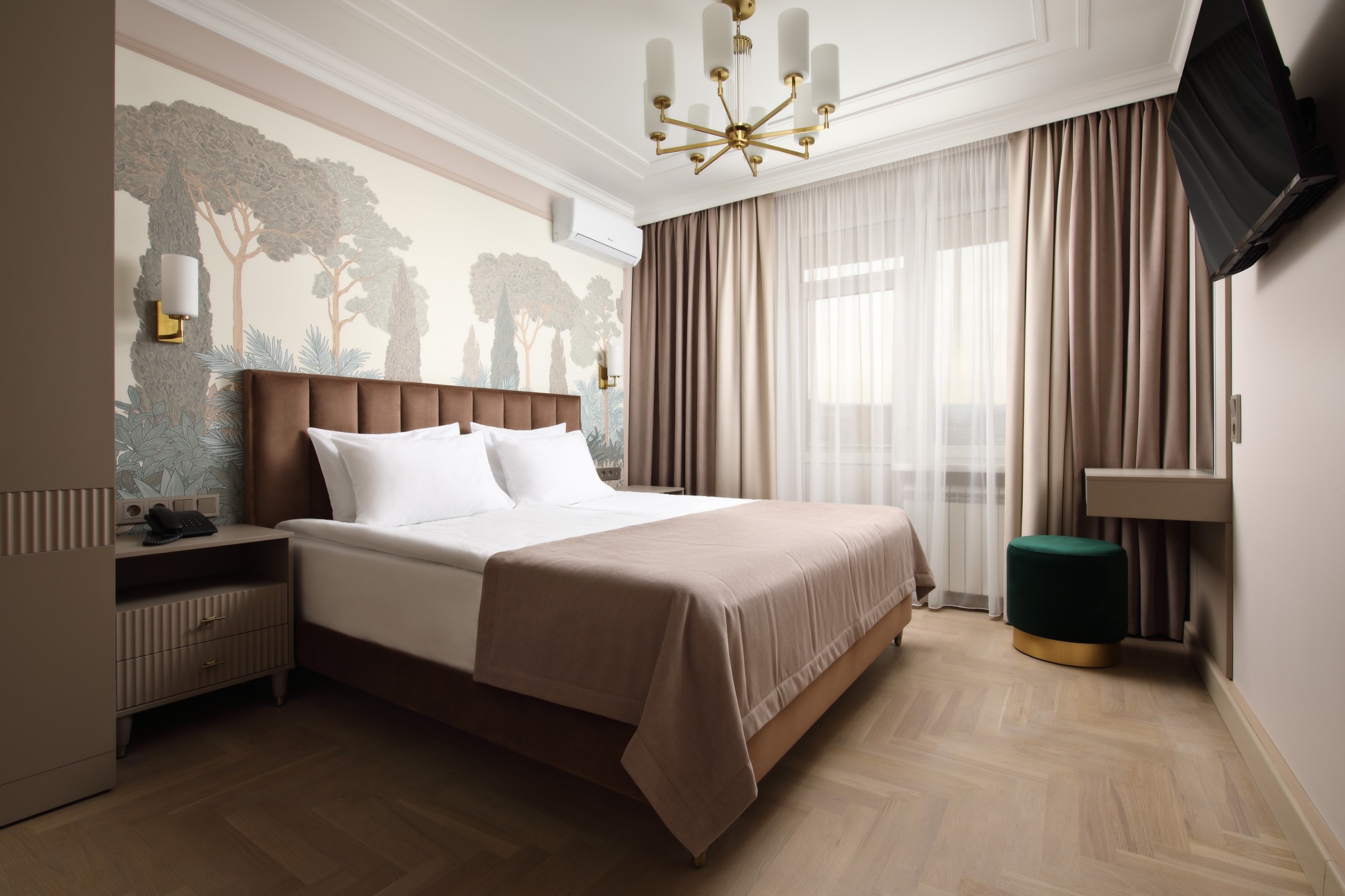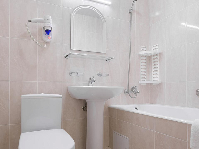 В номерах: двуспальная кровать, мягкая мебель, телевизор, кабельные каналы телевидения, магнитная ключ-карточка, мини-холодильник, телефон, сейф, ванная комната: фен для сушки волос, туалетный набор (шампунь, гель для душа, мыло, шапочка для душа).