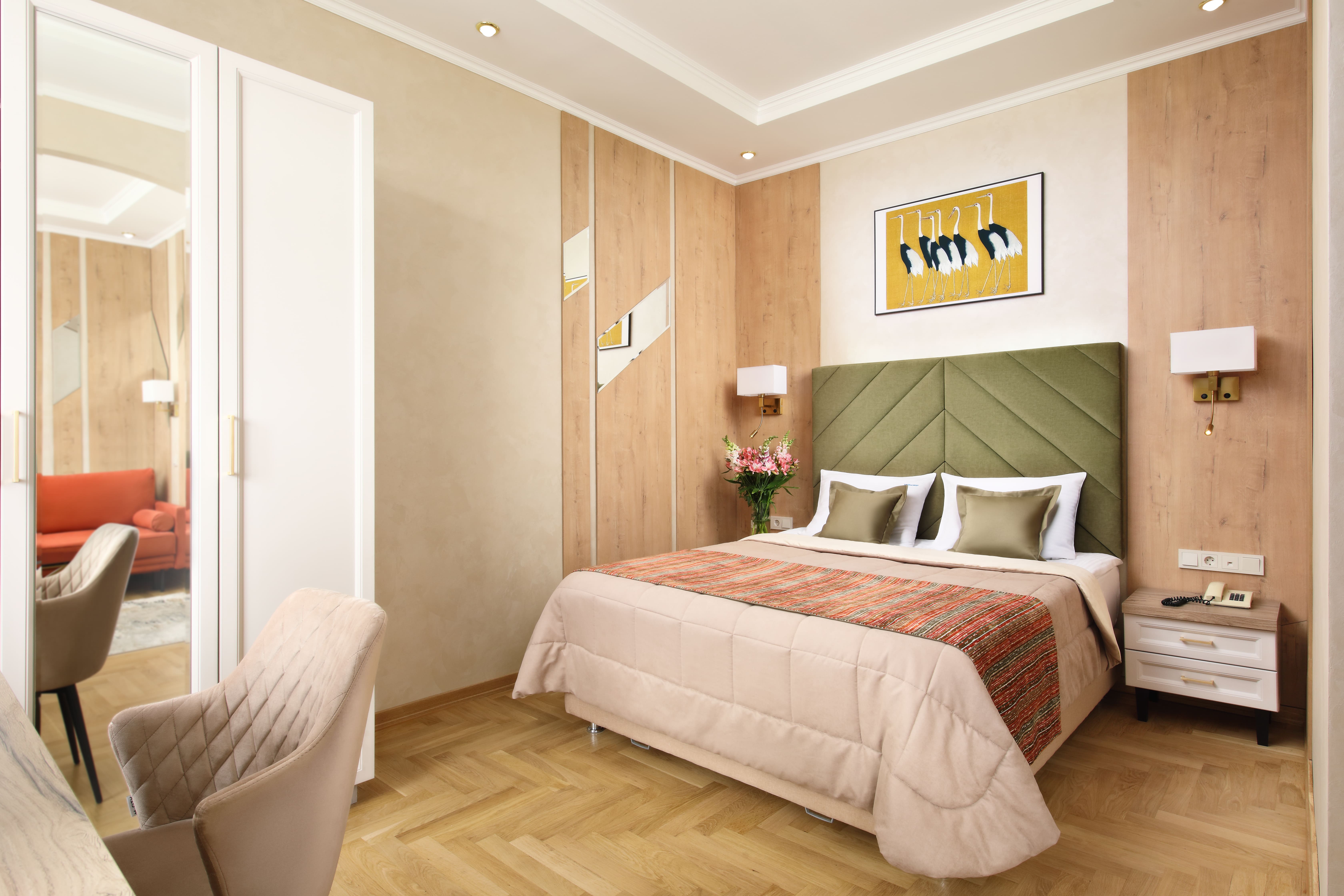холодильник, телевизор, чайник, фен, сейф, телефон, интернет в номере, мини-бар, санузел с душевой кабиной, ванные принадлежности, халат, тапочки, двуспальная кровать, набор мягкой мебели, мягкая мебель, электрочайник, сплит-система, чайный набор, швейный набор