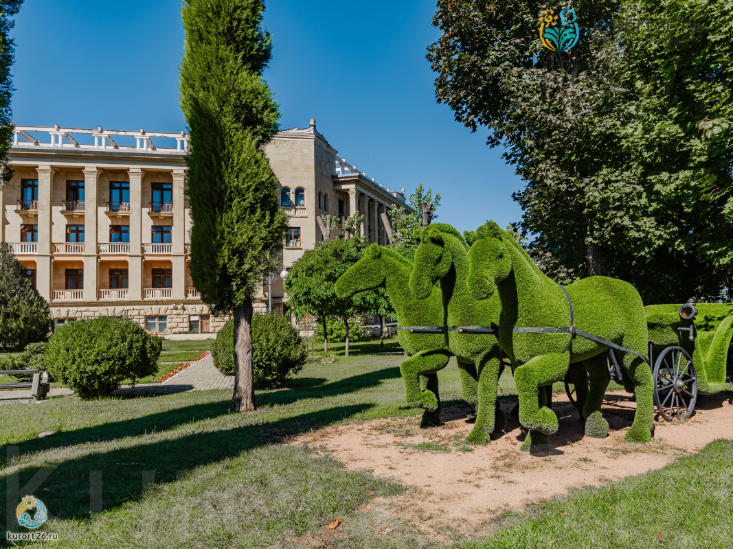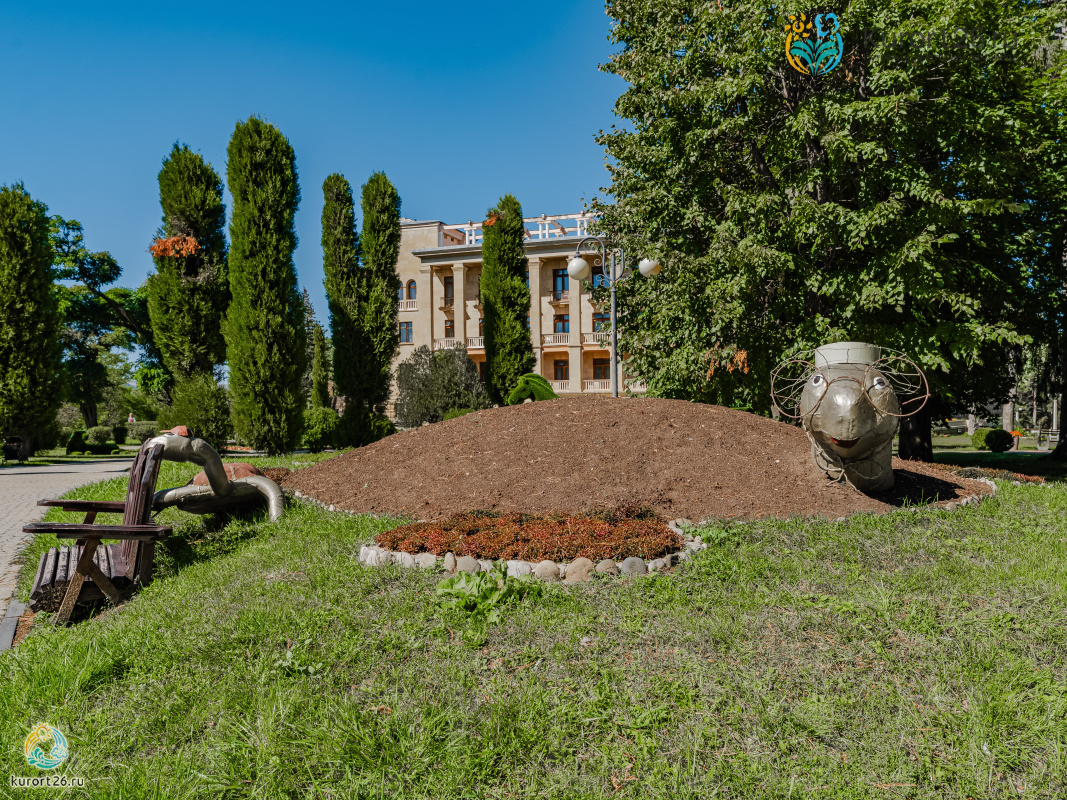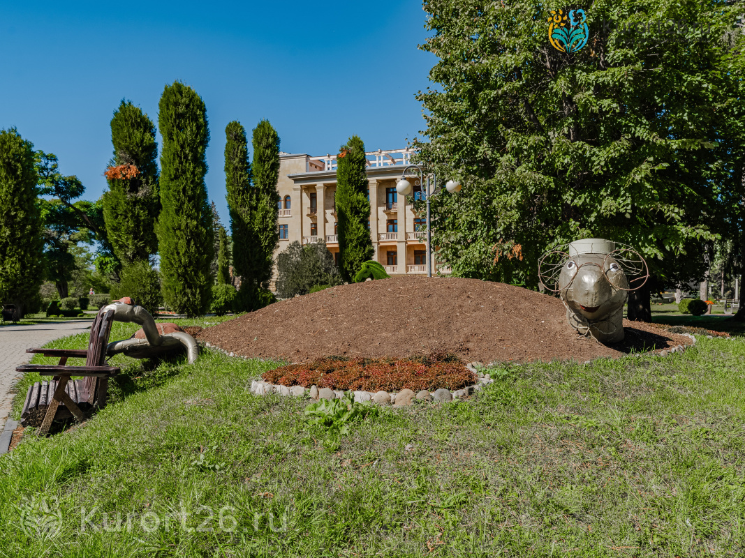 Общая площадь территории санатория «им. Г. К. Орджоникидзе» составляет 34 тысячи кв. м. и включает собственный парк с клумбами, фонтаном и архитектурными решениями. Здесь расположен и собственный бювет санатория с минеральными водами «Ессентуки 4», «Славяновская» и «Общий нарзан». К числу основных лечебных факторов санатория относятся среднегорный климат, наличие прогулочных маршрутов разной сложности и использование местных минеральных вод в сочетании с Тамбуканской грязью.
