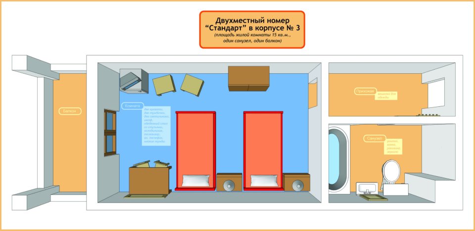 холодильник, телевизор, чайник, набор чайной посуды, балкон, душ, халат, тапочки