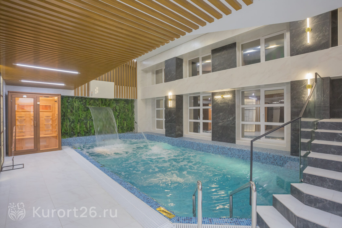 Современный акватермальный комплекс Mineral SPA:Центральный элемент комплекса — многофункциональный крытый бассейн, оснащённый системами циркуляции и очистки воды. В бассейне 5 видов гидромассажа: водопад, гидропушка, аэромассаж, противоток и подводный душ-массаж. Размер бассейна 7,5–3,5 м, глубина 1,3–1,5 м, температура воды варьируется от 29 до 32°C.