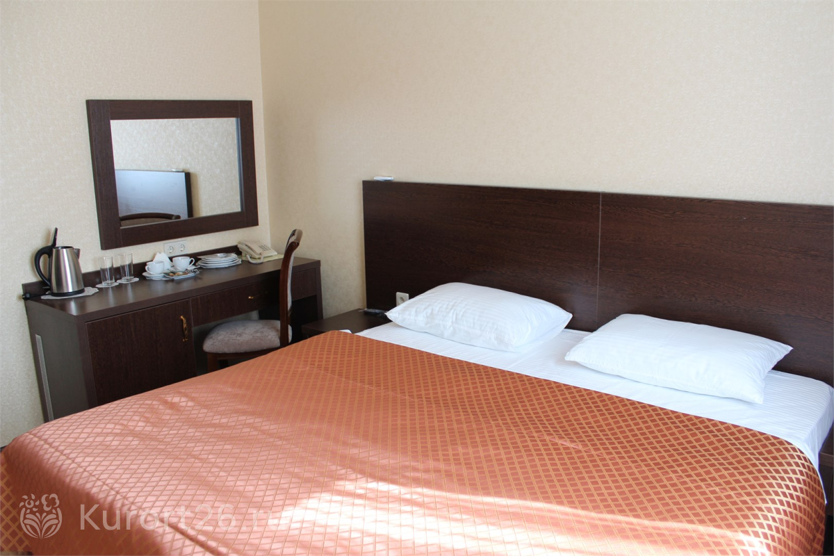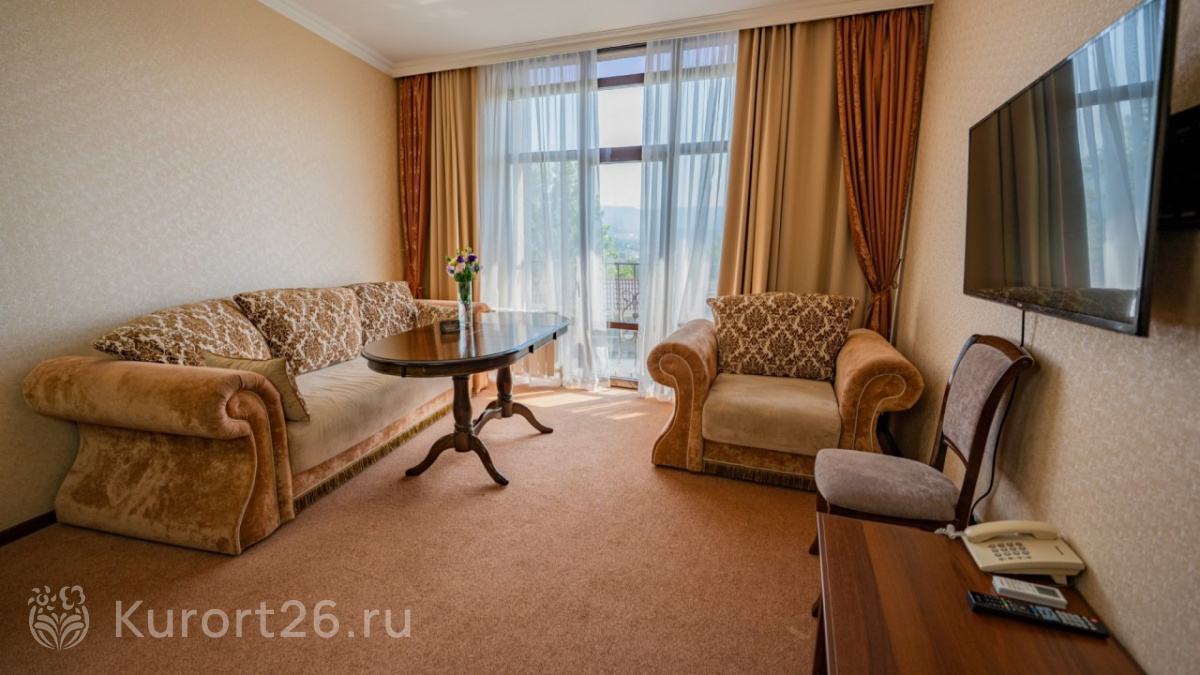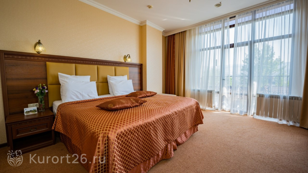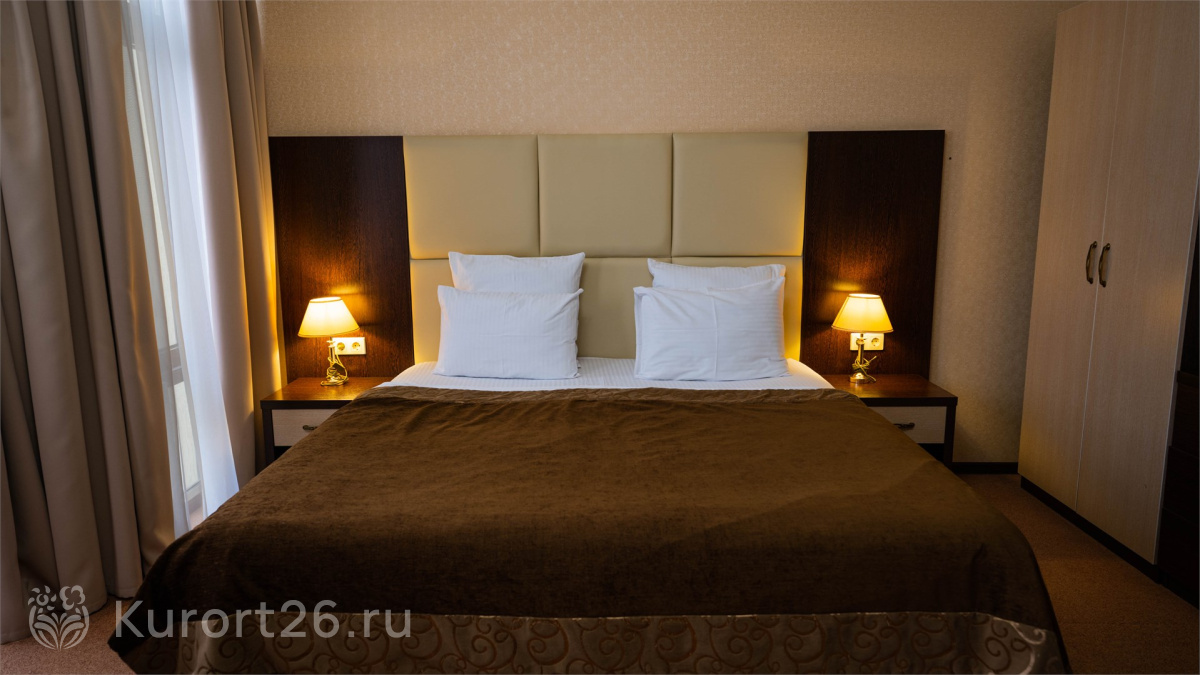У отеля два корпуса, между которыми есть пешеходный переход. В первом корпусе находятся номера, лечебные кабинеты и столовая, во втором — новые номера. Все номера оснащены современной техникой, включая кондиционеры и телевизоры. Люксы оформлены стильной мебелью из натурального дуба.