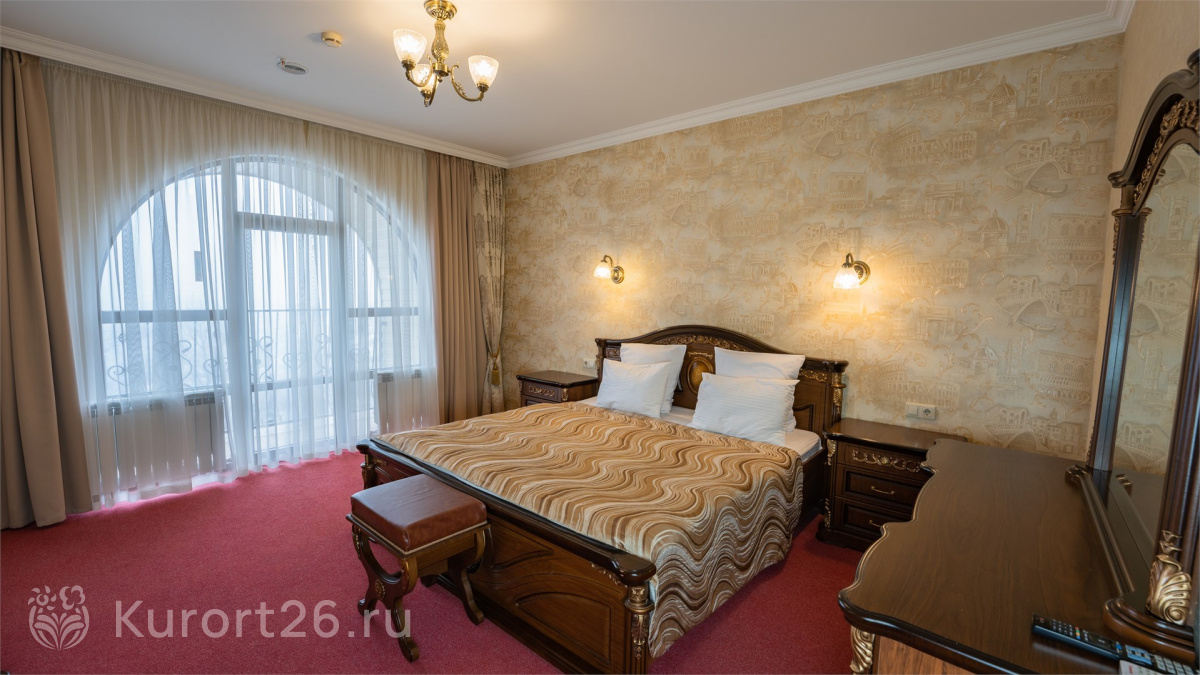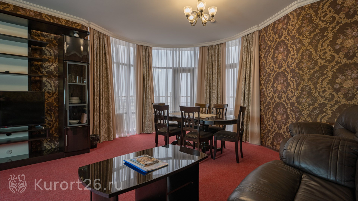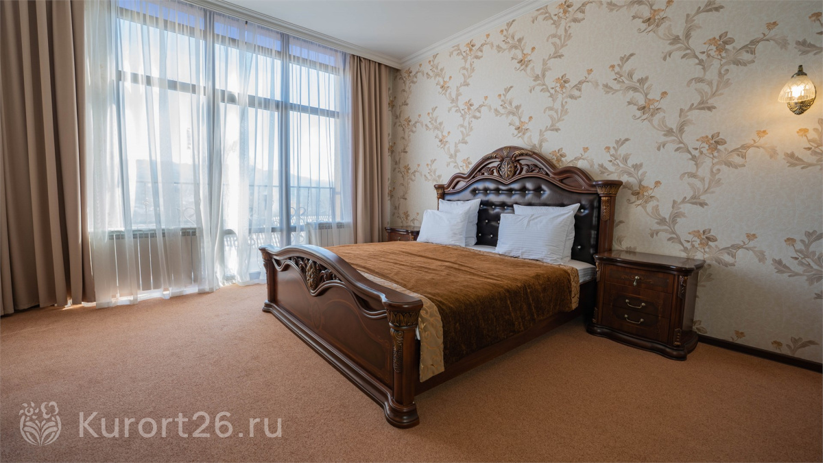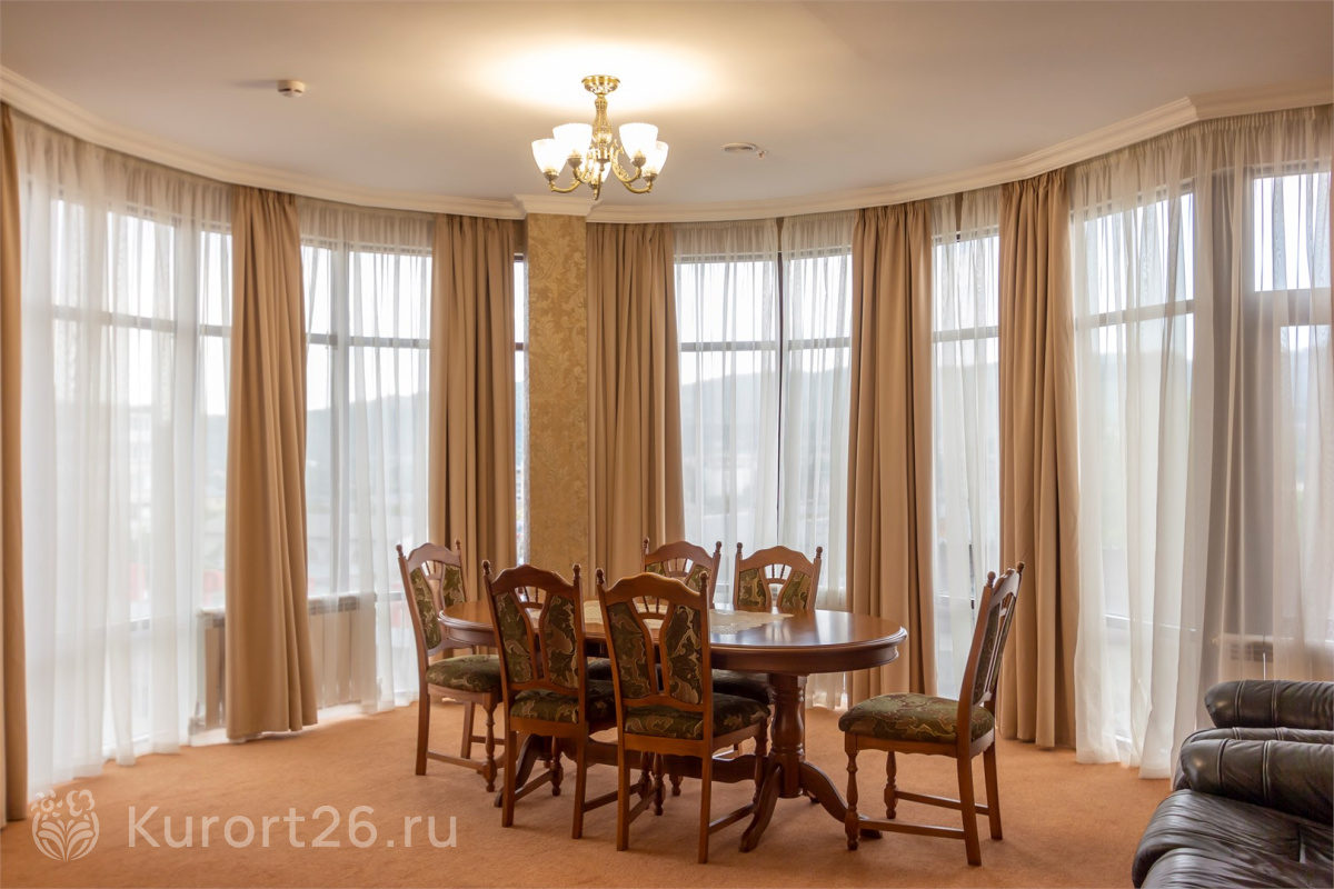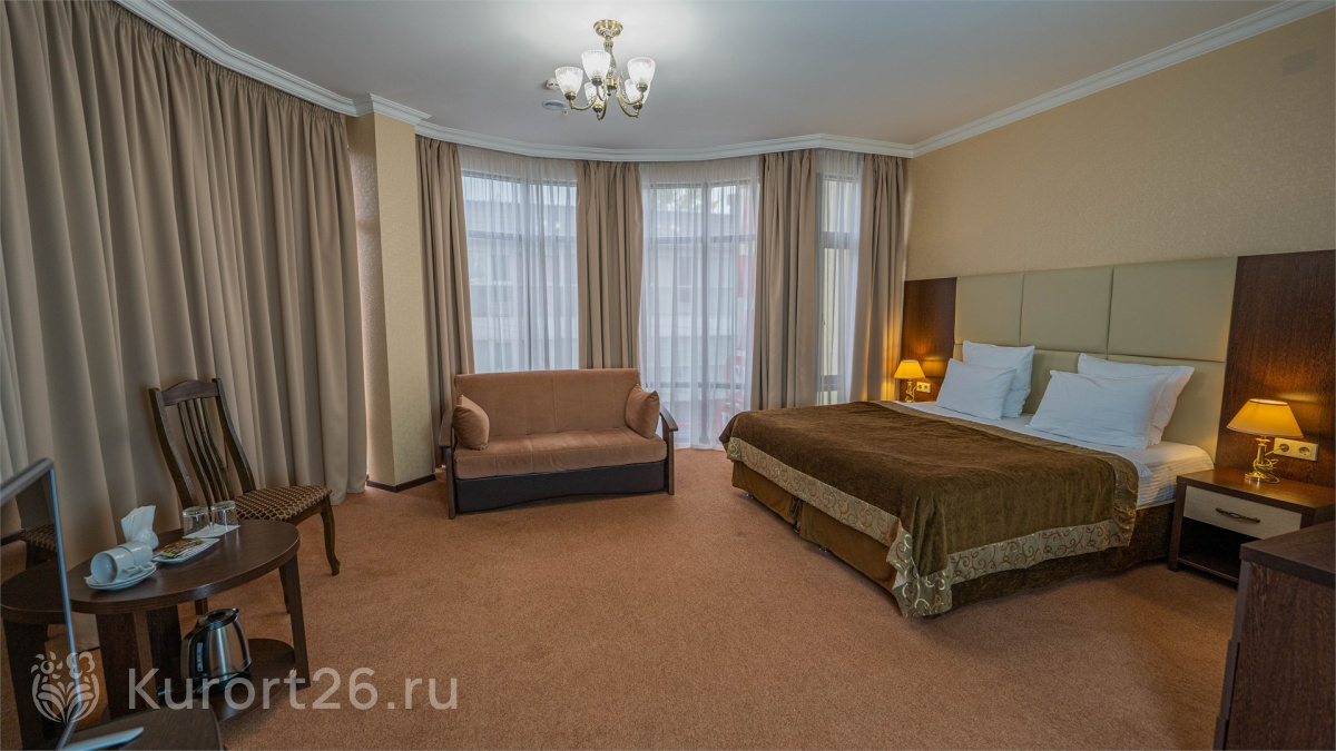 У отеля два корпуса, между которыми есть пешеходный переход. В первом корпусе находятся номера, лечебные кабинеты и столовая, во втором — новые номера. Все номера оснащены современной техникой, включая кондиционеры и телевизоры. Люксы оформлены стильной мебелью из натурального дуба.