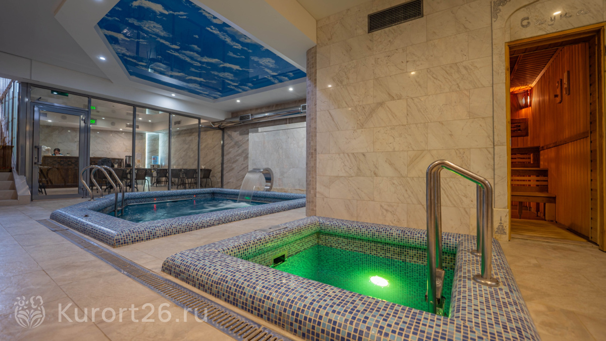 Спа-зона отеля включает подогреваемый бассейн 3х4 метра с гидромассажем, просторный хаммам, отделанный натуральным мрамором, и классическую финскую сауну. Для удобства гостей посещение разделено на мужские и женские часы.