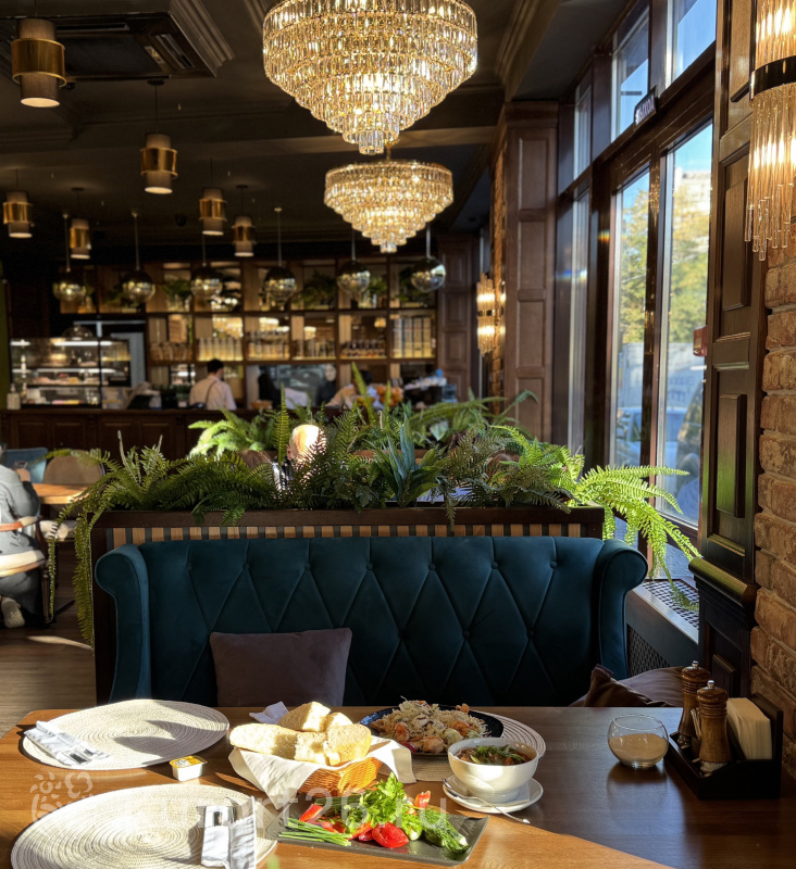 Питание организовано в столовой «Панорама» (08:00 до 20:00) и ресторане «Премьер» (10:00 до 22:00). Можно выбрать проживание с бесплатным завтраком или заказать завтрак в отеле. В меню ресторана и столовой блюда халяль кавказской кухни, приготовленные по традиционным рецептам из отборных продуктов. Гости отмечают демократичные цены и вкусные блюда.