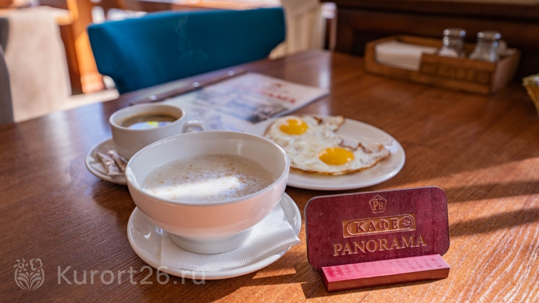 Гостям отеля предлагается полноценное питание с элементами традиционной кавказской кухни. В столовой «Панорама» три варианта комплексных завтраков, а также возможность расширенного питания за дополнительную плату.