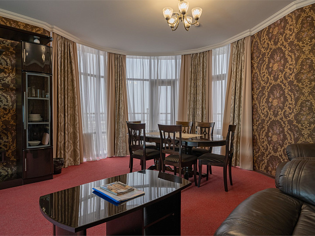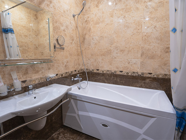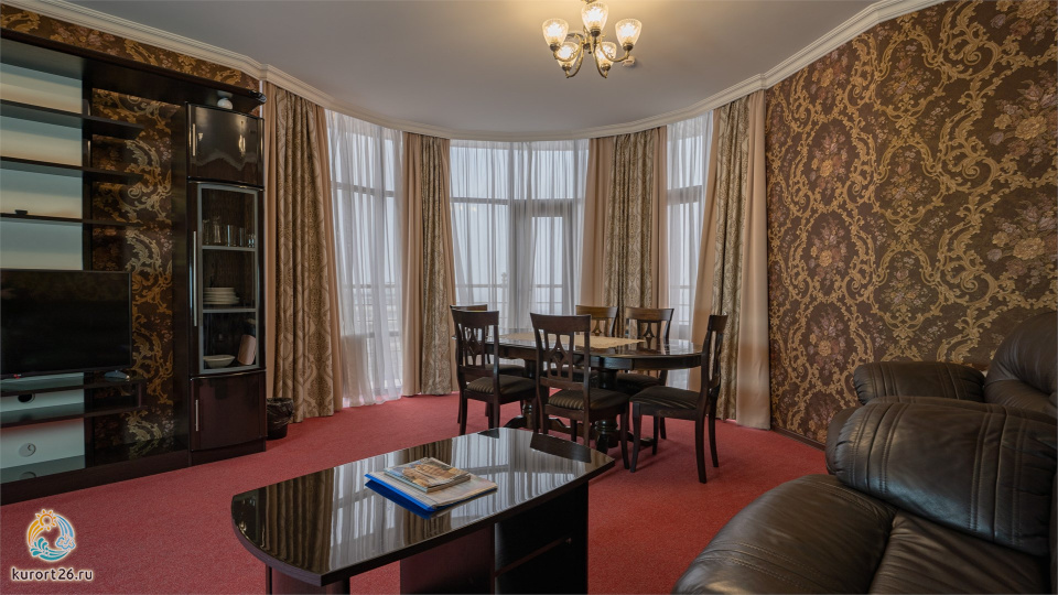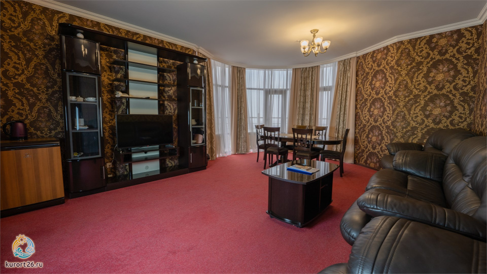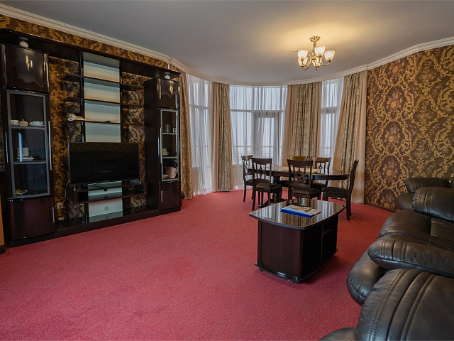 холодильник, фен, балкон, душ, телефон, тапочки, шкаф, обеденный стол, сплит-система, два телевизора, набор косметических средств, гостиная зона, Wi-Fi