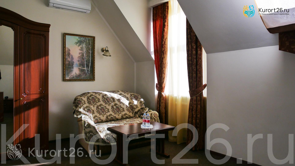 Номер 51, двухкомнатный люкс. Такой, как на фотографиях на сайте. В номере есть кондиционер, холодильник, посуда, чайник, чай, кофе. В ванной комнате все необходимые принадлежности: фен, шампунь, бритвенные принадлежности, зубная щетка, паста. Также есть халаты и тапочки.
