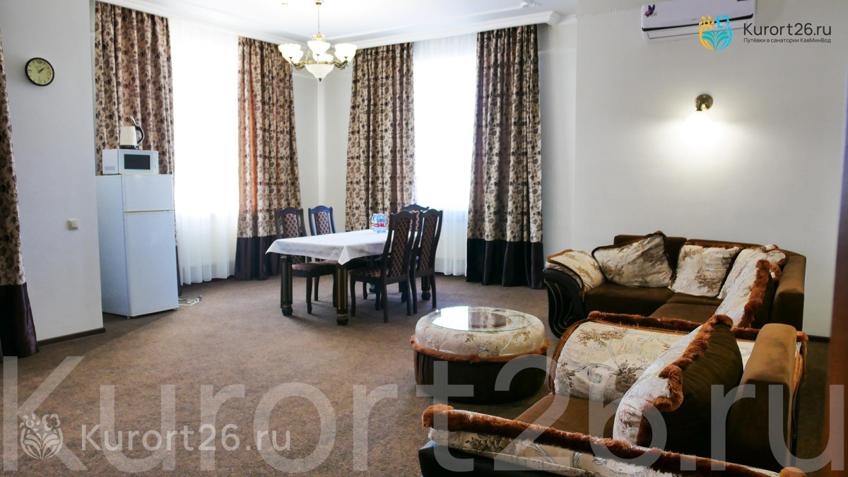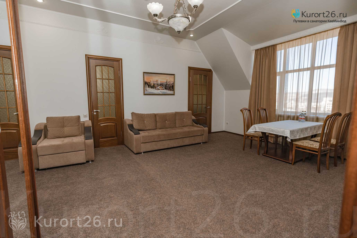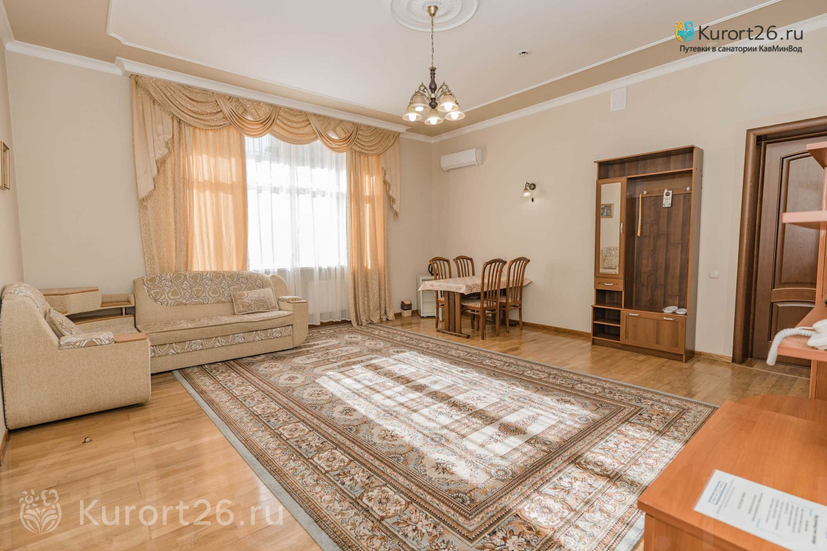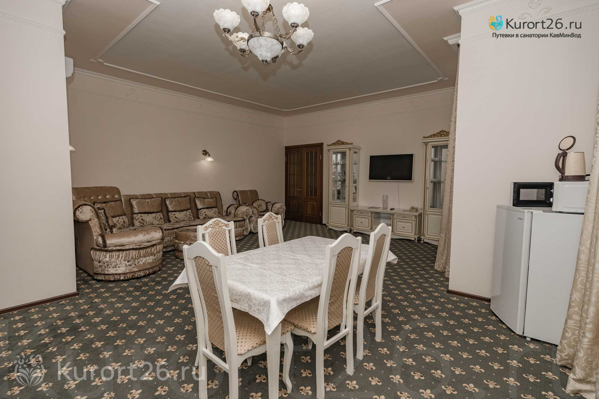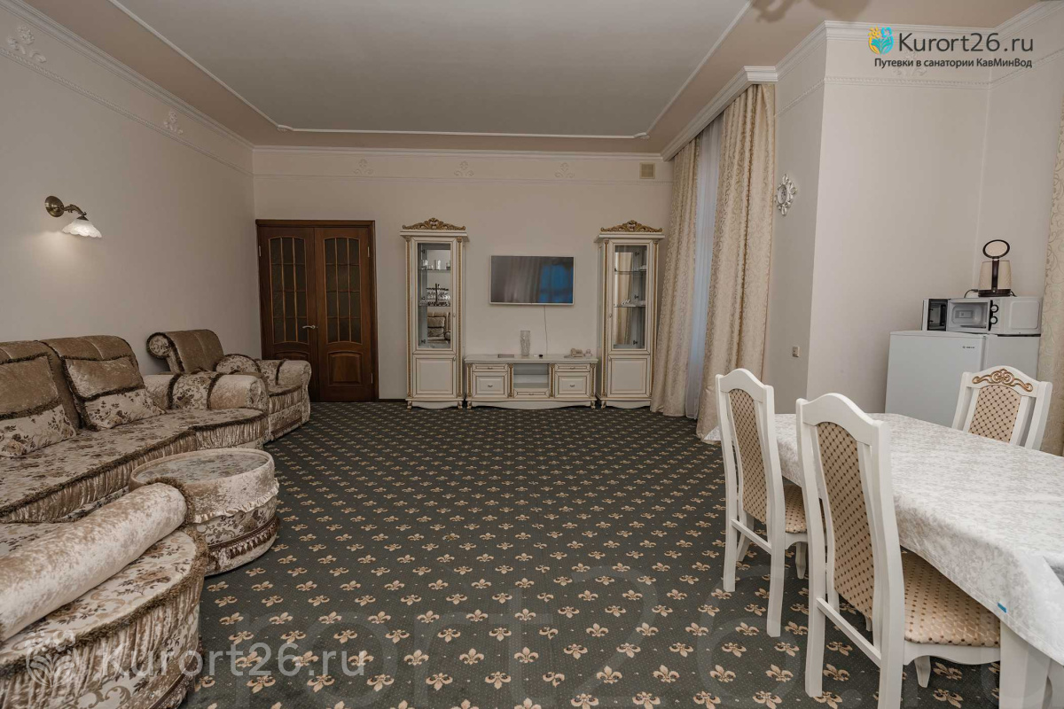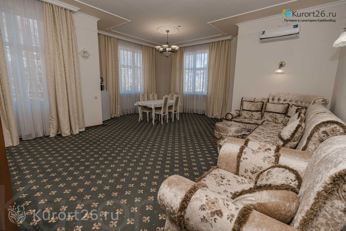 Гости пансионата «Империал» размещаются в 1-, 2- или 3-комнатных «Люксах». Номера семейного типа, просторные и с высокими потолками. В каждом есть бесплатный доступ в интернет, сейф, фен, электрочайник, холодильник, телевизор и средства гигиены. Окна номеров выходят на курортный парк.