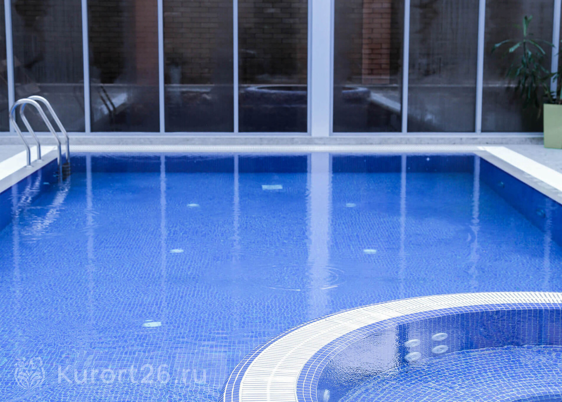 - Посещение термального комплекса санатория «им. Орджоникидзе»: крытый бассейн 15×6 метров, сауна и бассейн-купель (за доплату)