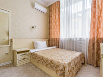 холодильник, кондиционер, телевизор, набор чайной посуды, душ, ванные принадлежности, шкаф, односпальная кровать, электрочайник, прикроватная тумба