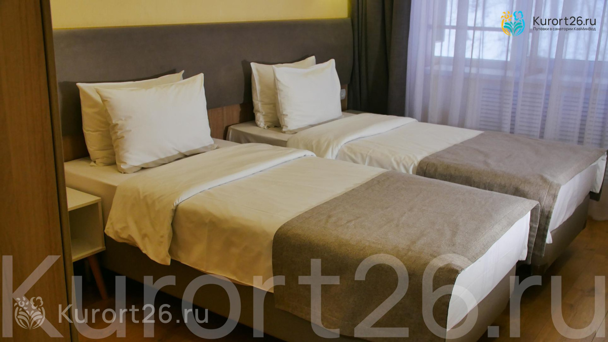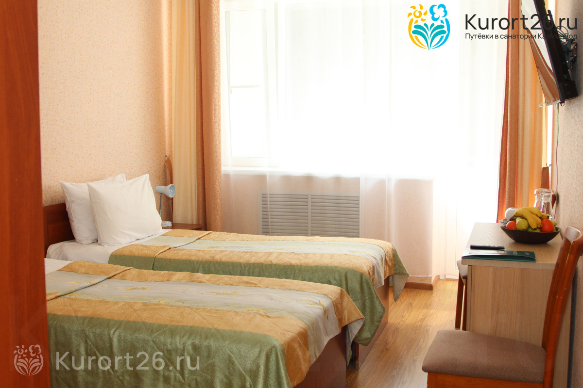 Спальный корпус соединён тёплыми переходами с медицинским корпусом, бассейном и столовой. В санатории несколько категорий номеров: Стандарты, Улучшенные стандарты с балконом, Люксы с панорамными окнами.