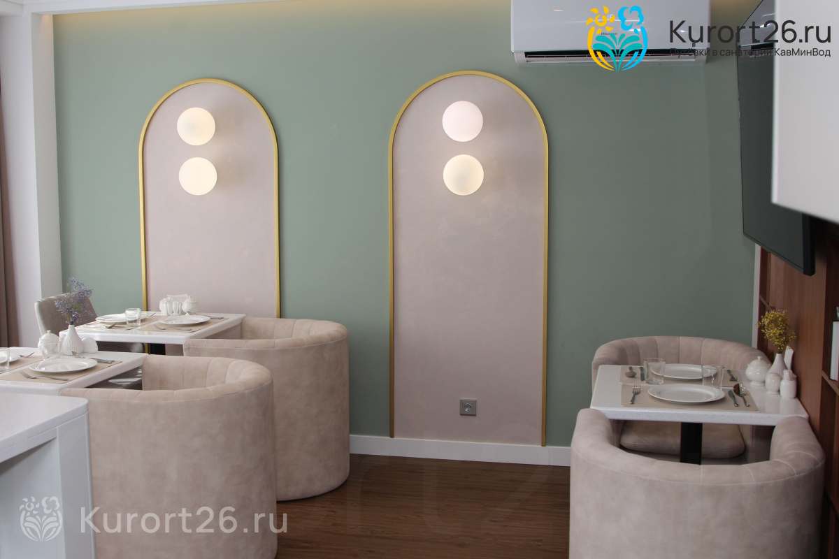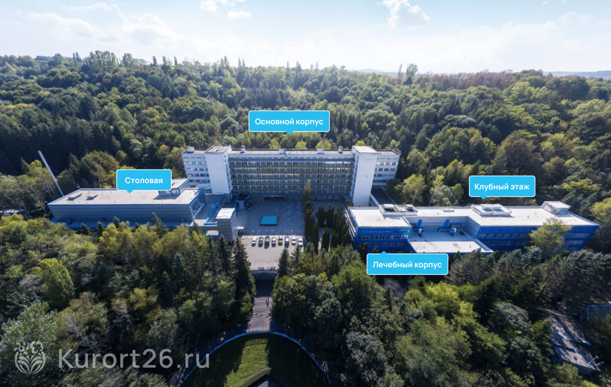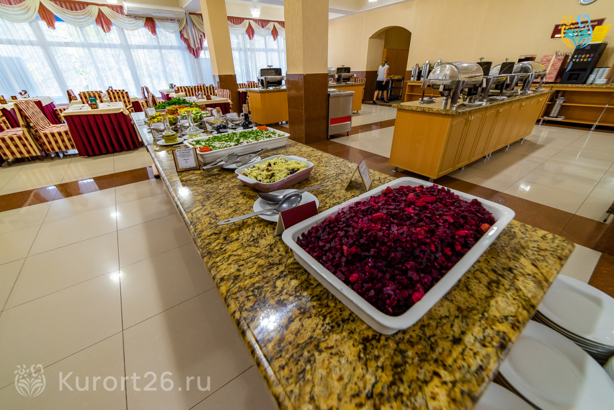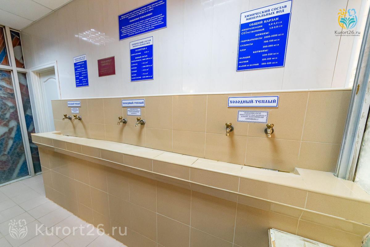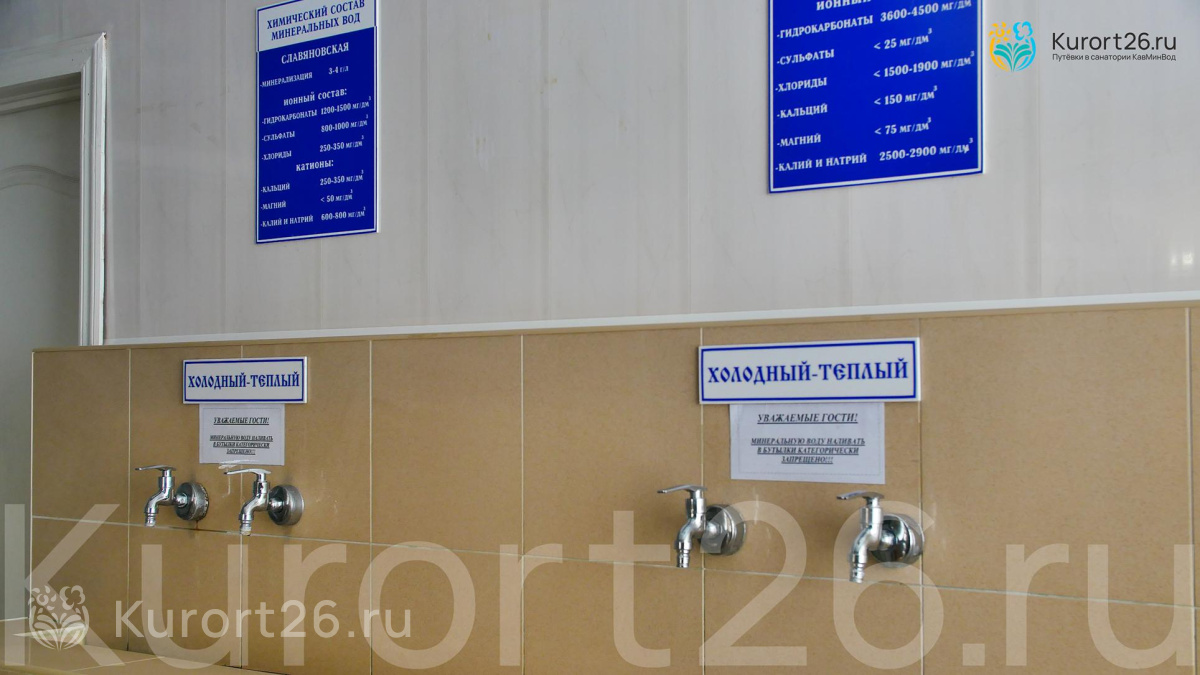 На территории санатория расположен собственный бювет с тремя видами минеральной воды: «Общий нарзан» (Кисловодск), «Славяновская» (Железноводск) и «Ессентуки № 4».