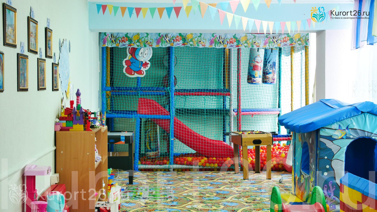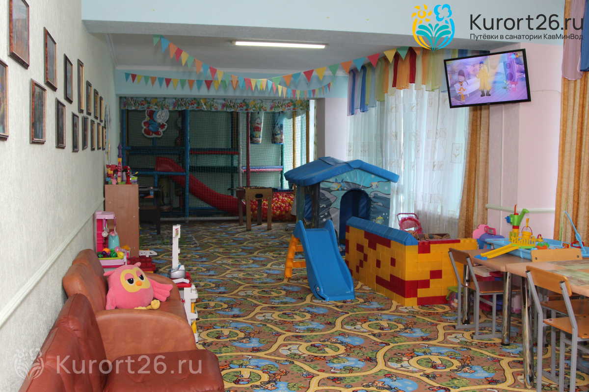 В санатории есть просторная детская комната с воспитателем, а также открытая игровая площадка. Детский клуб «Планета детства» расположен на втором этаже, рядом с медицинским корпусом. Дети до 4-х лет могут посещать клуб с родителями, а с 4-х лет остаются под присмотром воспитателя.