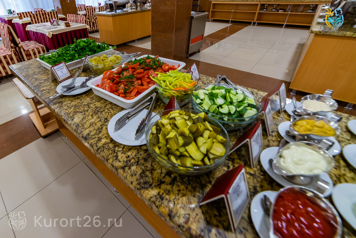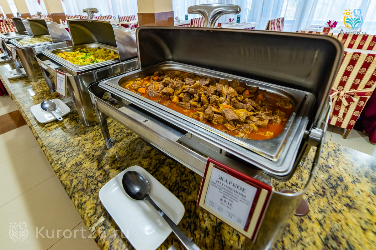 Во все виды путёвок включено трёхразовое питание «шведский стол» с разнообразным меню. По запросу можно заказать еду в номер или ланч-бокс для пикника в парке.