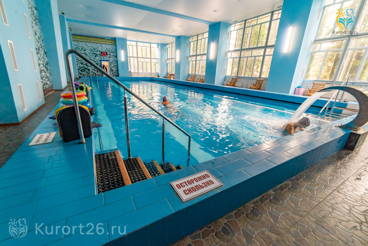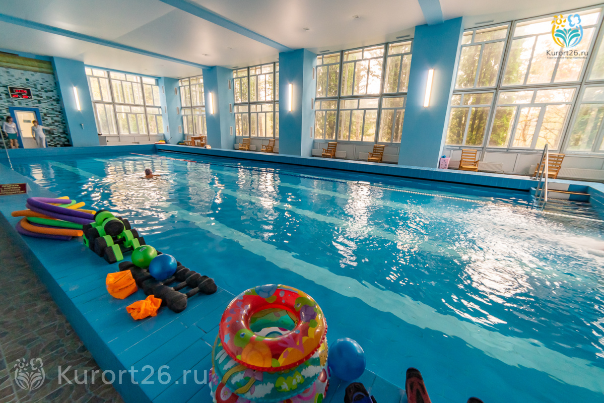 В санатории большой бассейн 20×8 м с подогревом. Рядом расположена финская сауна. В бассейне проводятся занятия аквааэробикой.