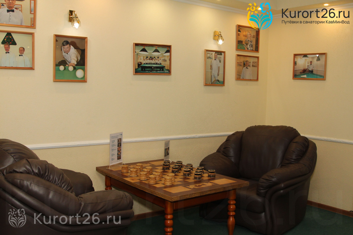 Есть просторный бильярдный зал с тремя столами для игры в русский и американский бильярд. В холлах и зонах отдыха оборудованы уголки с настольными играми: шахматами, шашками, нардами.