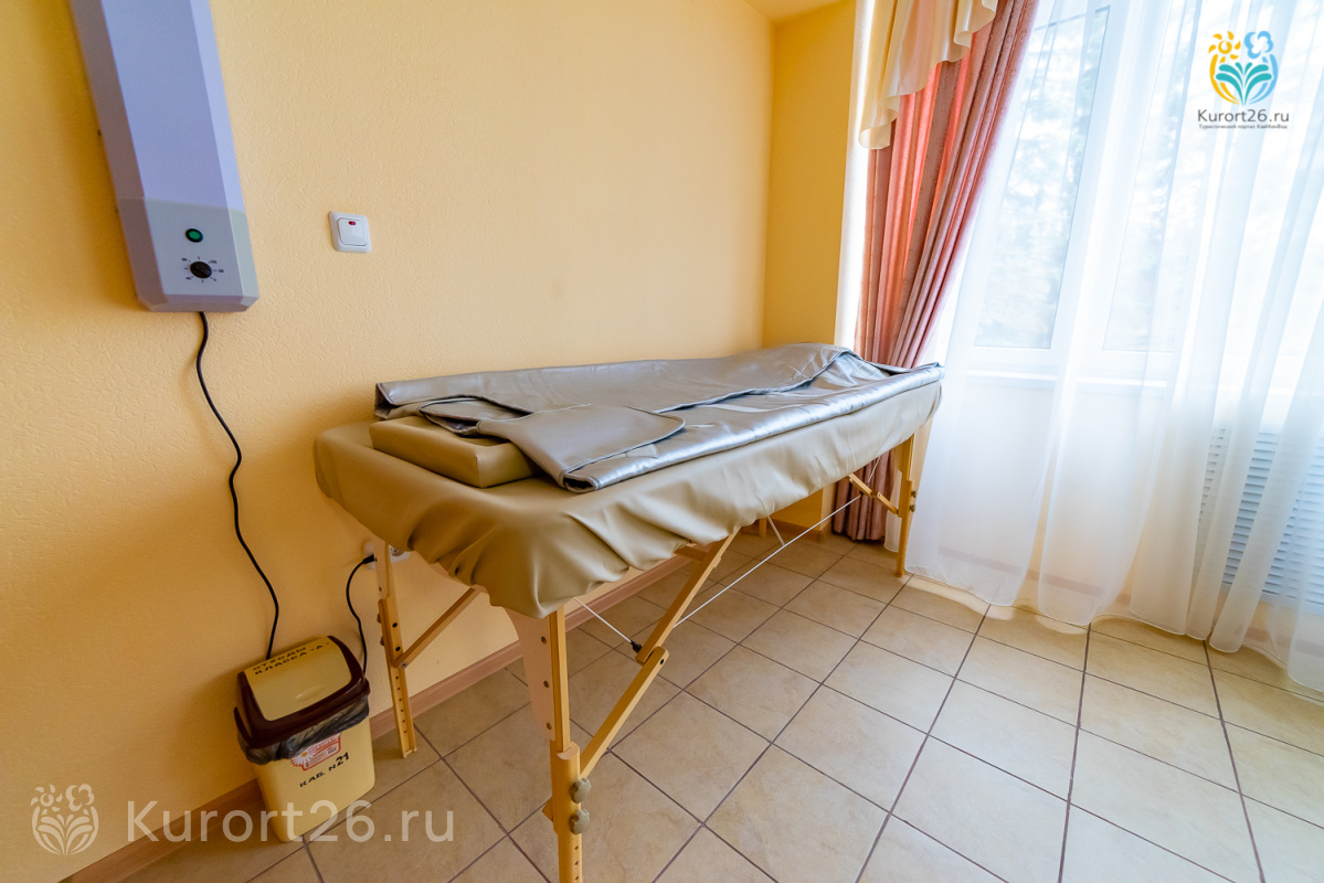 Лечение: прием минеральной воды, ванны (имбирная, хвойно-жемчужная, йодо -бромовая, валериановая, «Антистресс» — 1 вид по показаниям), аппаратная физиотерапия (лимфодренаж, лимфопрессотерапия, прессотерапия), ЛФК, аквааэробика, тренажерный зал, спортивные игры.