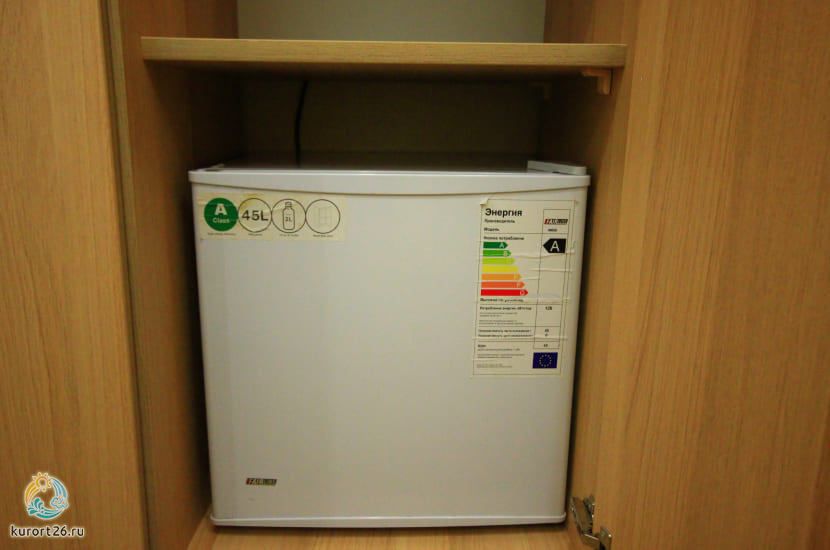 холодильник, телевизор, фен, сейф, ванные принадлежности, двуспальная кровать, шкаф, обеденный стол, две тумбочки, два стула, набор косметических средств, Wi-Fi