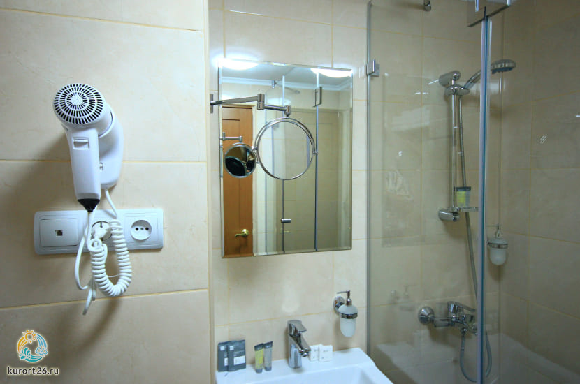 кондиционер, телевизор, фен, балкон, сейф, телефон, ванные принадлежности, тапочки, кофемашина, двуспальная кровать / две односпальные кровати, халаты, набор косметических средств, набор полотенец, Wi-Fi