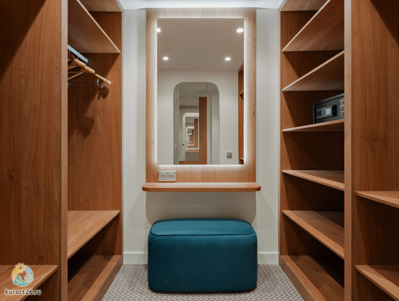 кондиционер, телевизор, фен, балкон, сейф, телефон, ванные принадлежности, тапочки, кофемашина, двуспальная кровать / две односпальные кровати, халаты, набор косметических средств, набор полотенец, гардеробная комната, Wi-Fi