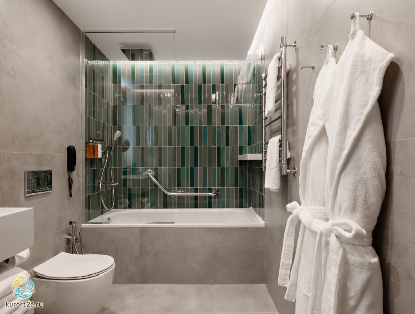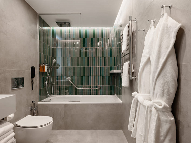 кондиционер, телевизор, фен, балкон, сейф, телефон, ванные принадлежности, тапочки, кофемашина, двуспальная кровать / две односпальные кровати, халаты, набор косметических средств, набор полотенец, Wi-Fi