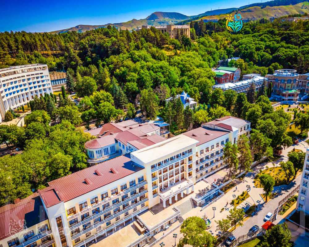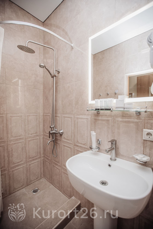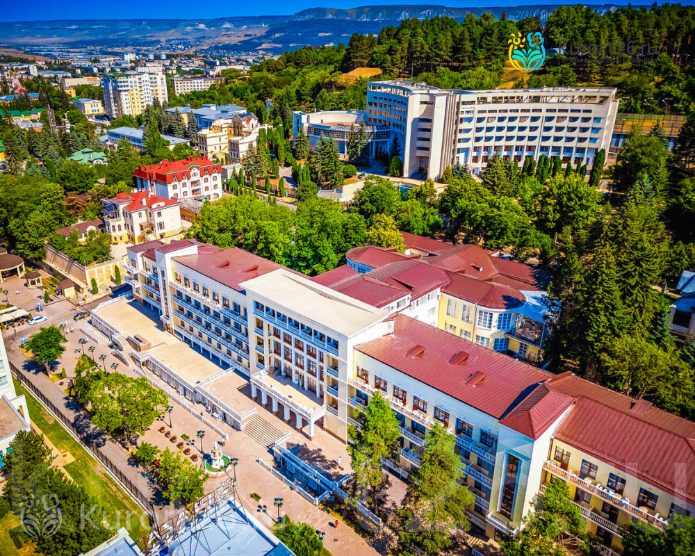 - Расположен у входа в Верхний парк, на одной из самых красивых улиц Кисловодска. 6 минут до Каскадной лестницы, 10 минут — до Канатки и Долины роз