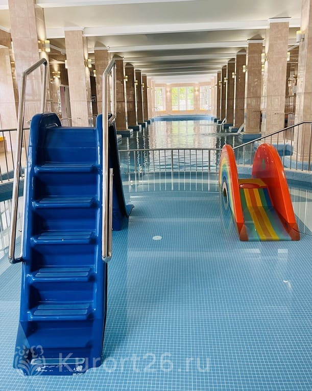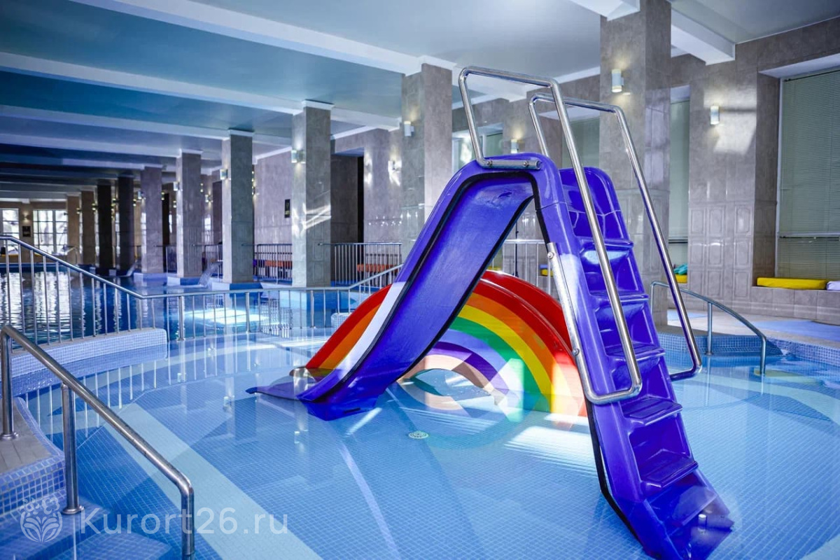 Здравница принимает детей с рождения, лечение доступно с 4-х лет. Ведет прием врач-педиатр. В санатории есть отдельный детский бассейн с водными горками. Работают детский клуб и юношеский клуб с PlayStation и настольным футболом.