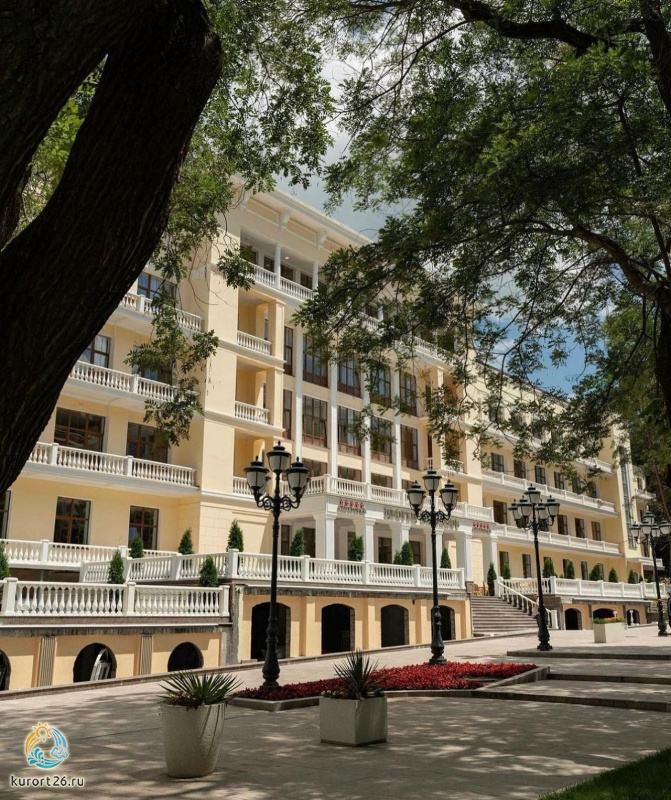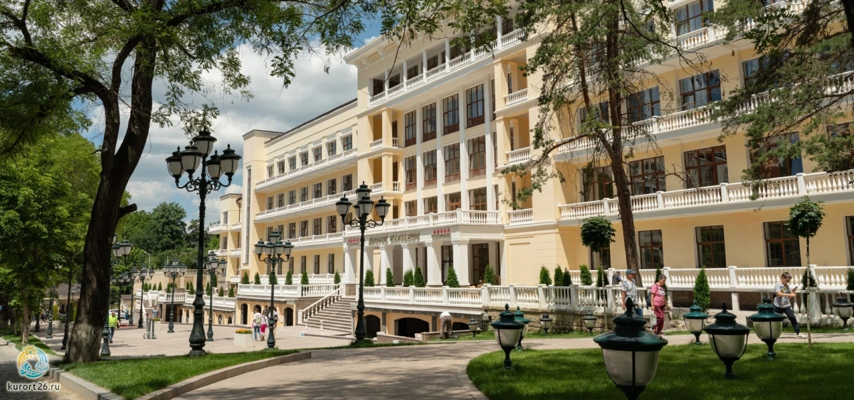 На территории санатория есть собственные бюветы с водой: сульфатный, доломитный и общий Нарзан, Славяновская, Ессентуки №4. Это минеральные воды сразу из трех городов: Кисловодска, Железноводска и Ессентуков.