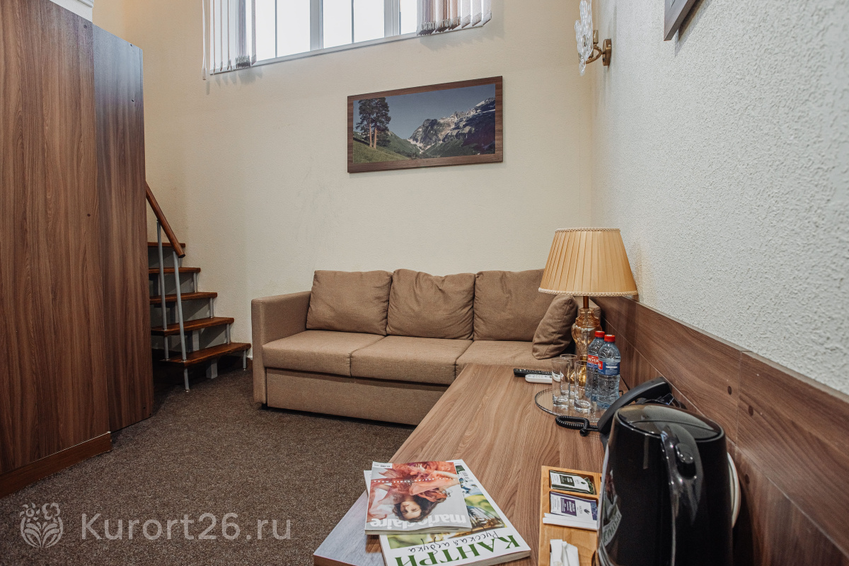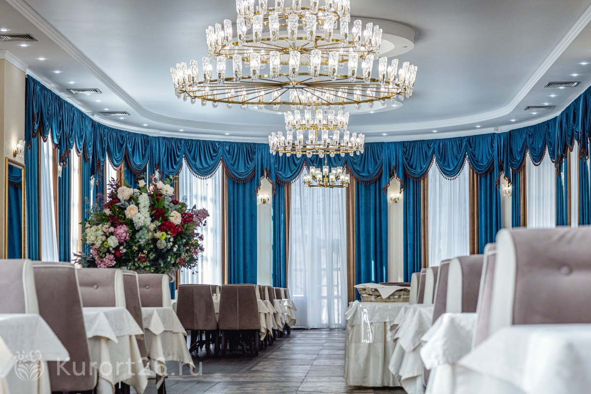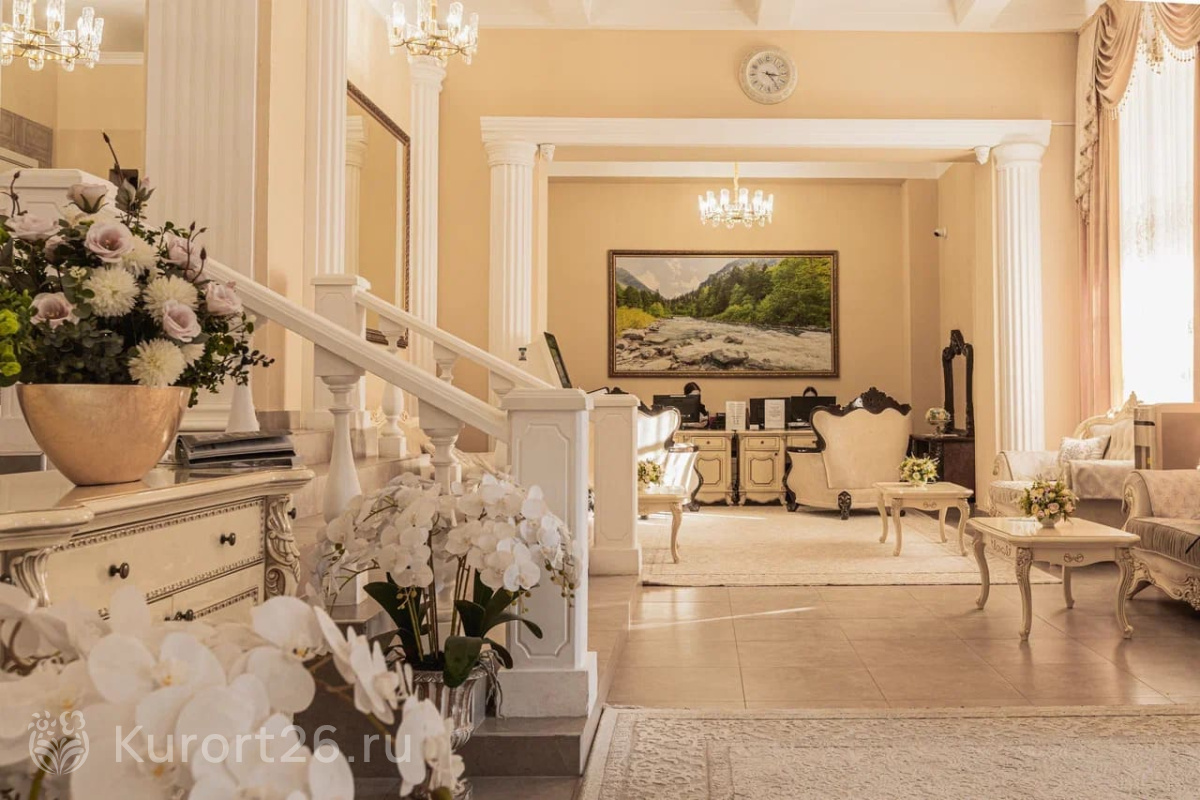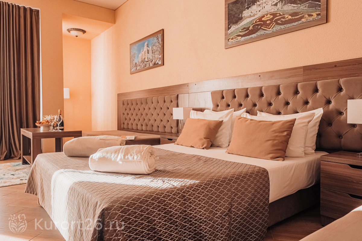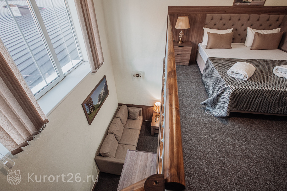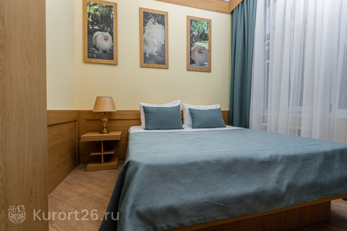 Здание санатория — архитектурный и исторический памятник города. Снаружи и внутри санаторий напоминает дворец: роскошные интерьеры, высокие потолки, каскадные люстры. Номера отдельного типа с кроватями king size, сплит-системой, чайной станцией, мини-баром. Услуга «Меню сна» позволяет выбрать подушки и матрас идеальной жесткости для комфортного и здорового сна. Есть номера с балконами с видом на бульвар.