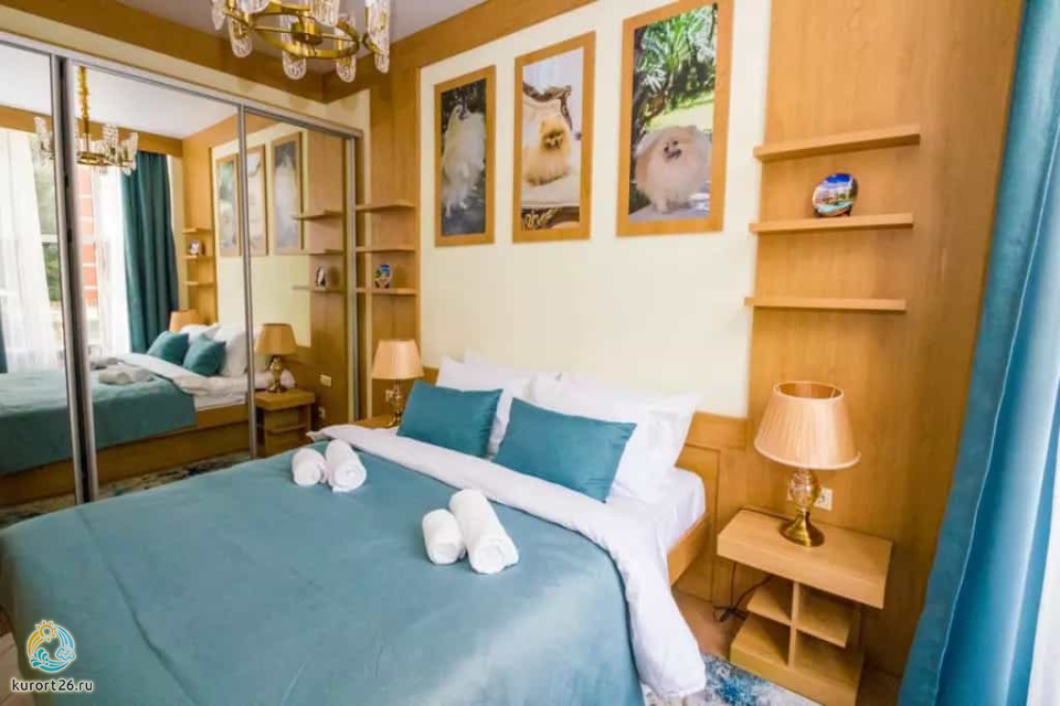 холодильник, телевизор, чайник, фен, сейф, тапочки, двуспальная кровать, шкаф, прикроватные тумбочки, мягкая мебель, зеркало, журнальный столик, стул, посуда, халаты, набор косметических средств, набор полотенец, Wi-Fi