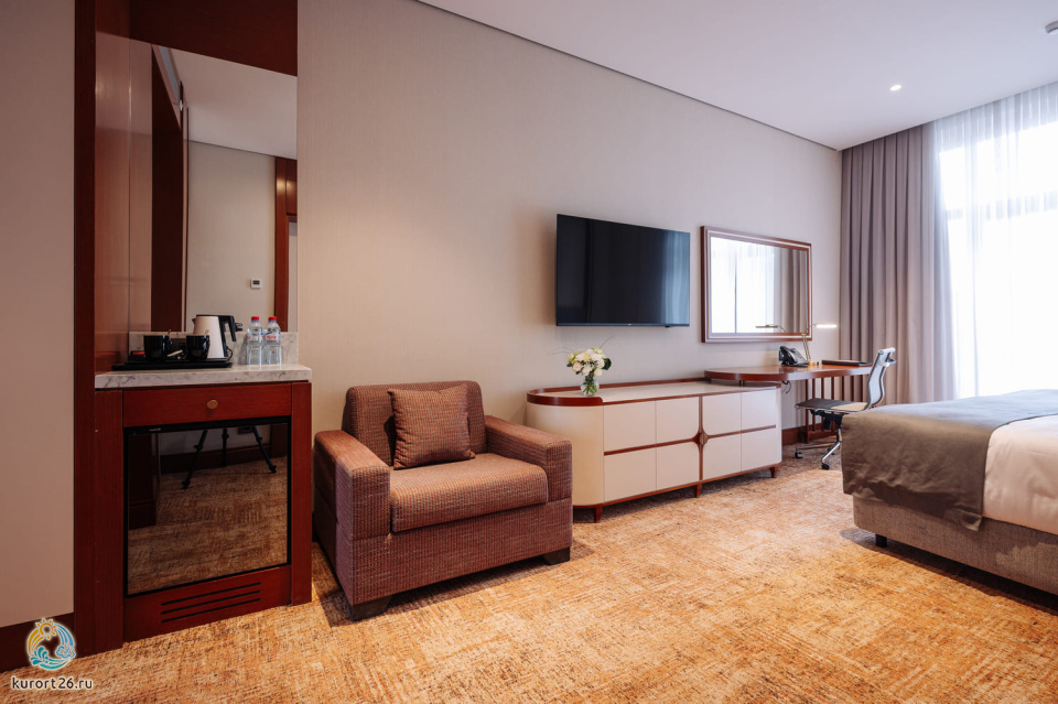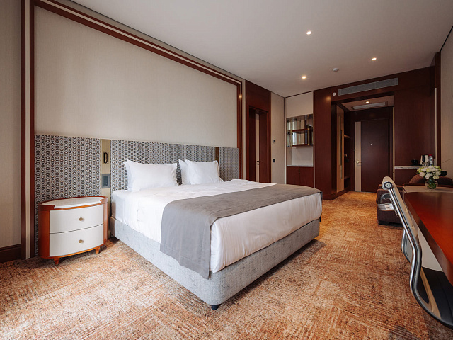 Спальное место Здесь есть— комфортная двуспальная кровать с ортопедическим матрасом, рабочая зона с письменным столом и удобным стулом, мини-бар, ЖК-телевизор, сейф,.