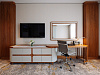 фен, набор чайной посуды, балкон, сейф, телефон, мини-бар, халат, тапочки, диван, электрочайник, зеркало, кресло, два телевизора, система климат-контроля, журнальный столик, двуспальная кровать с ортопедическим матрасом, Рабочая зона с письменным столом и удобным стулом, Туалетный столик, Душевая кабина, Гигиенический душ, Банные принадлежности, Гостиничная парфюмерия