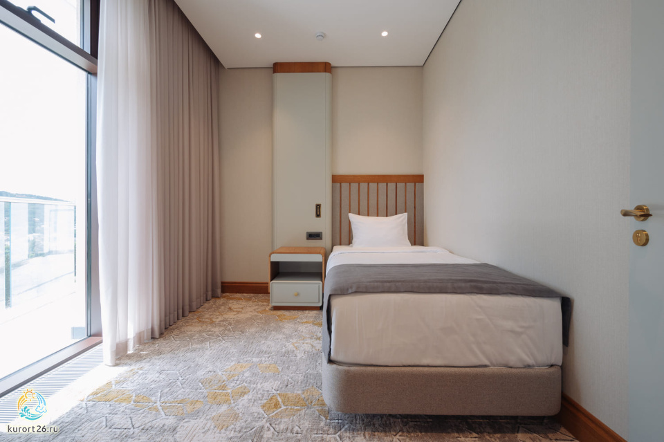 телевизор, фен, набор чайной посуды, балкон, сейф, телефон, мини-бар, халат, тапочки, электрочайник, зеркало, система климат-контроля, Рабочая зона с письменным столом и удобным стулом, Туалетный столик, Душевая кабина, Гигиенический душ, Банные принадлежности, Гостиничная парфюмерия, 1 двуспальная кровать в DBL или 2 односпальные с ортопедическим матрасом в TWIN, раскладной диван в DBL или раскладное кресло в TWIN