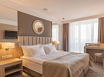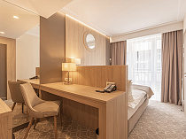 кондиционер, телевизор, чайник, набор чайной посуды, сейф, душ, телефон, интернет в номере, санузел с душевой кабиной, ванные принадлежности, халат, тапочки, шкаф-купе, стол, зеркало, сплит-система, умывальник, полутороспальная кровать, набор косметических средств, чайный набор, меню-спа