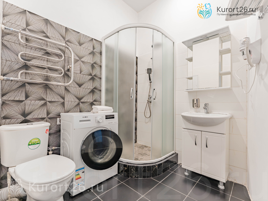 холодильник, телевизор, фен, интернет в номере, ванные принадлежности, тапочки, двуспальная кровать, шкаф, обеденный стол, мини-кухня, стиральная машина, набор полотенец, Душевая кабина- 11 янв — 30 апрот 9220 ₽