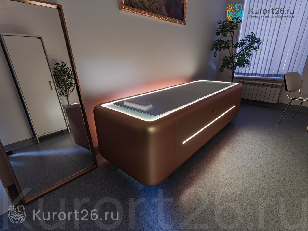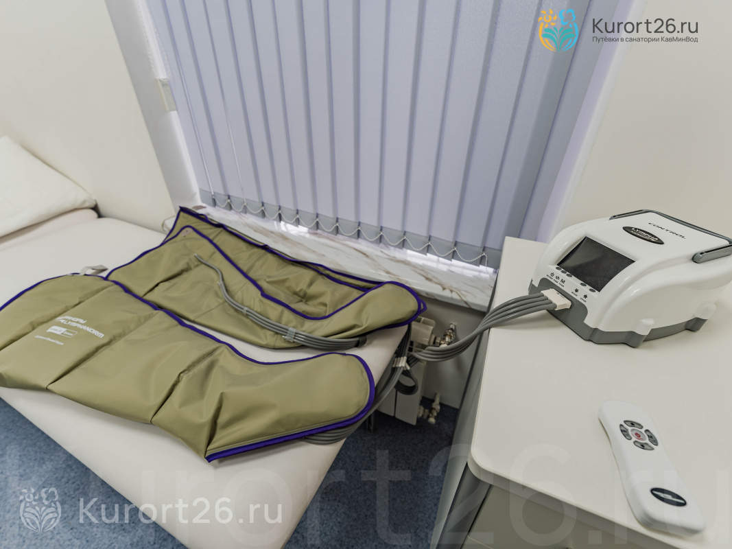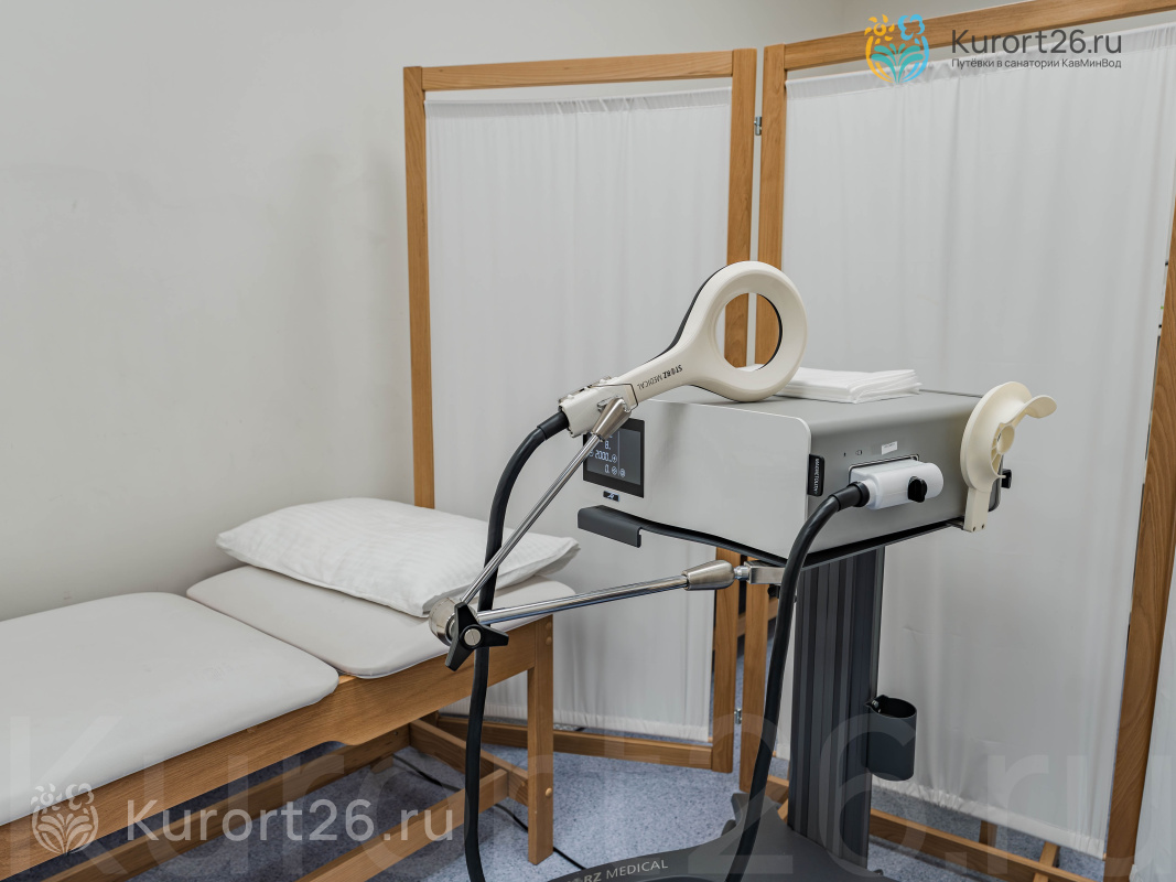 В 2024 году открылся новый медицинский центр. У санатория своя лаборатория, кабинеты функциональной диагностики. Современное оборудование: УЗИ-аппараты экспертного класса Canon Toshiba Aplio A450 (Япония), аппарат для криотерапии и высокоинтенсивной лазерной терапии QMD Helios CRYO-Thermal, ударно-волновая терапия Masterpuls MP100 (Швейцария), уникальная технология 3 в 1 Icoone Laser Med. Проводятся процедуры в кислородной барокамере и карбокситерапия. Бальнеотделение предлагает 12 видов лечебных ванн и 6 видов душей, включая подводный душ-массаж и шотландский душ Шарко.