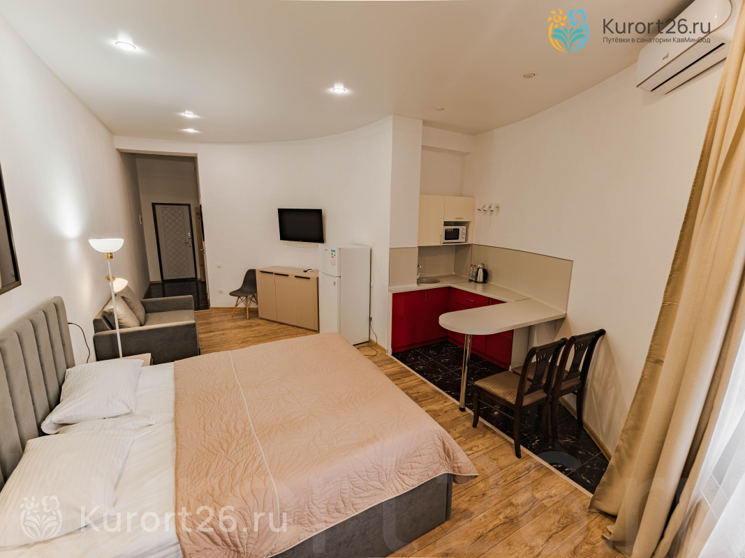 - Уникальный формат — апарт-санаторий с мини-квартирами и классическими номерами
