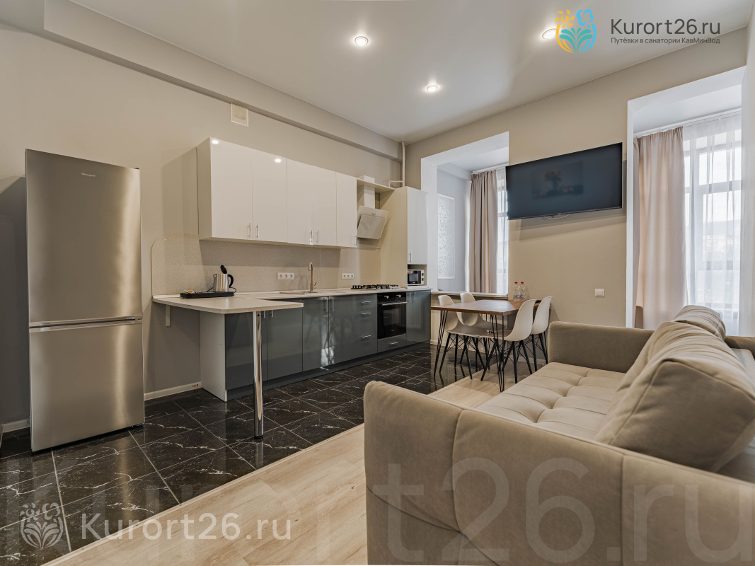 холодильник, кондиционер, телевизор, фен, балкон, интернет в номере, ванные принадлежности, тапочки, двуспальная кровать, шкаф, обеденный стол, диван, мини-кухня, стиральная машина, набор полотенец, Душевая кабина- 11 янв — 30 апрот 9880 ₽