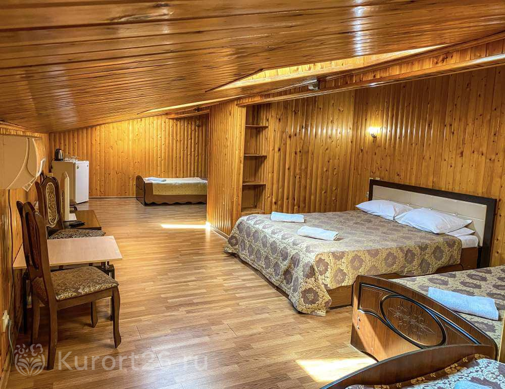 Комплекс предлагает уютное проживание в 10 номерах, включая многоместные варианты для семейного отдыха. Небольшое количество номеров создаёт атмосферу уединения и покоя. Во всех категориях удобная мебель, кондиционер, телевизор, холодильник, чайник, гигиенические принадлежности.