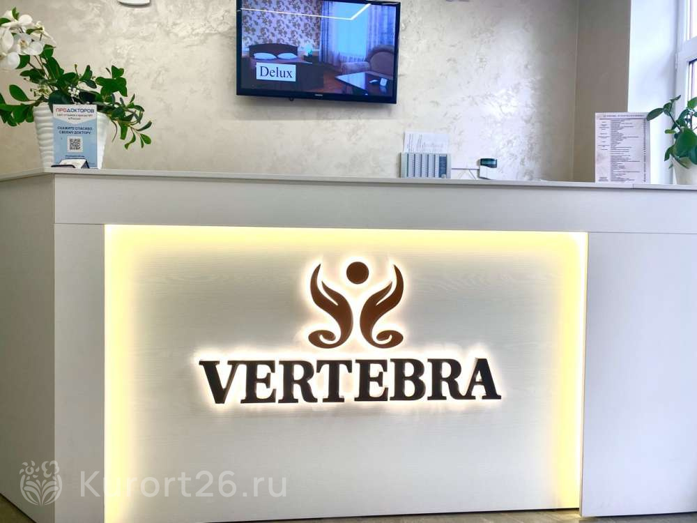 Санаторий «Вертебра» — отель и курортная поликлиника в центре Кисловодска. Расположен у начала Курортного бульвара, всего в 8 минутах ходьбы от Нарзанной галереи и Нижнего Курортного парка. «Вертебра» отмечен премией «Лучшие клиники Кисловодска 2024».