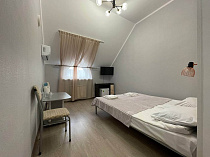 кондиционер, телевизор, интернет в номере, ванные принадлежности, электрочайник, стол, ванная комната, набор полотенец, две односпальные кровати, мини-холодильник