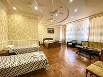 кондиционер, телевизор, интернет в номере, ванные принадлежности, двуспальная кровать, электрочайник, стол, ванная комната, набор полотенец, три односпальные кровати, мини-холодильник