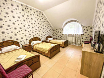 телевизор, интернет в номере, ванные принадлежности, электрочайник, стол, ванная комната, набор полотенец, три односпальные кровати, мини-холодильник